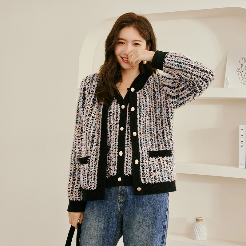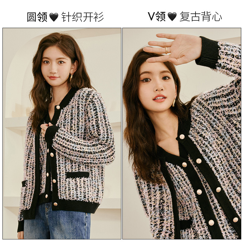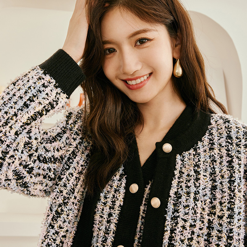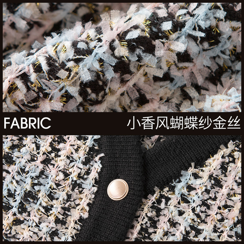 Iveli 2023 spring dress new bump color small fragrant wind butterfly yarn gold silk design sensation knit cardigan women's spring