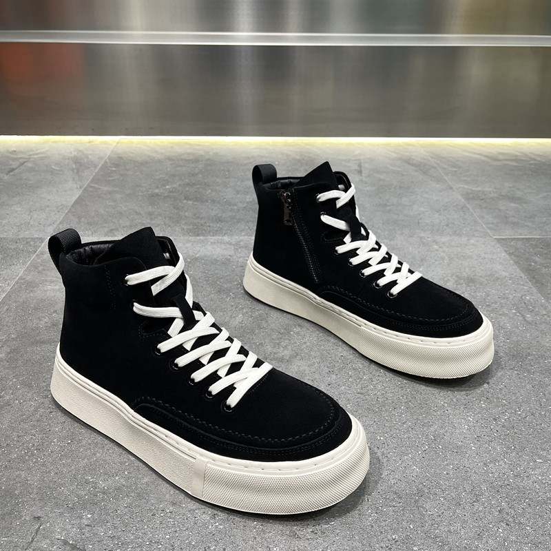 Cotton shoes men winter 2022 new leather high - tide shoes tide thick soles add - up shoes plus heat leisure plate shoes