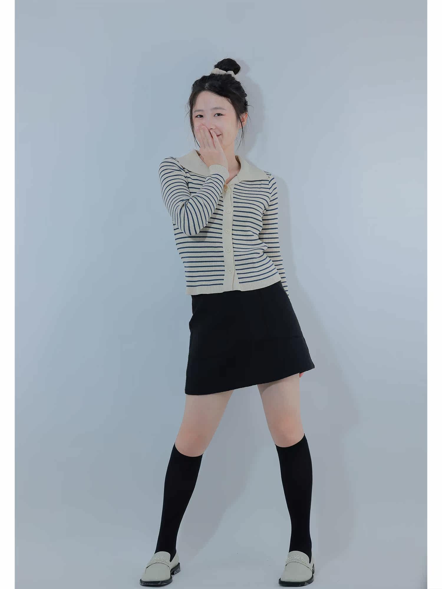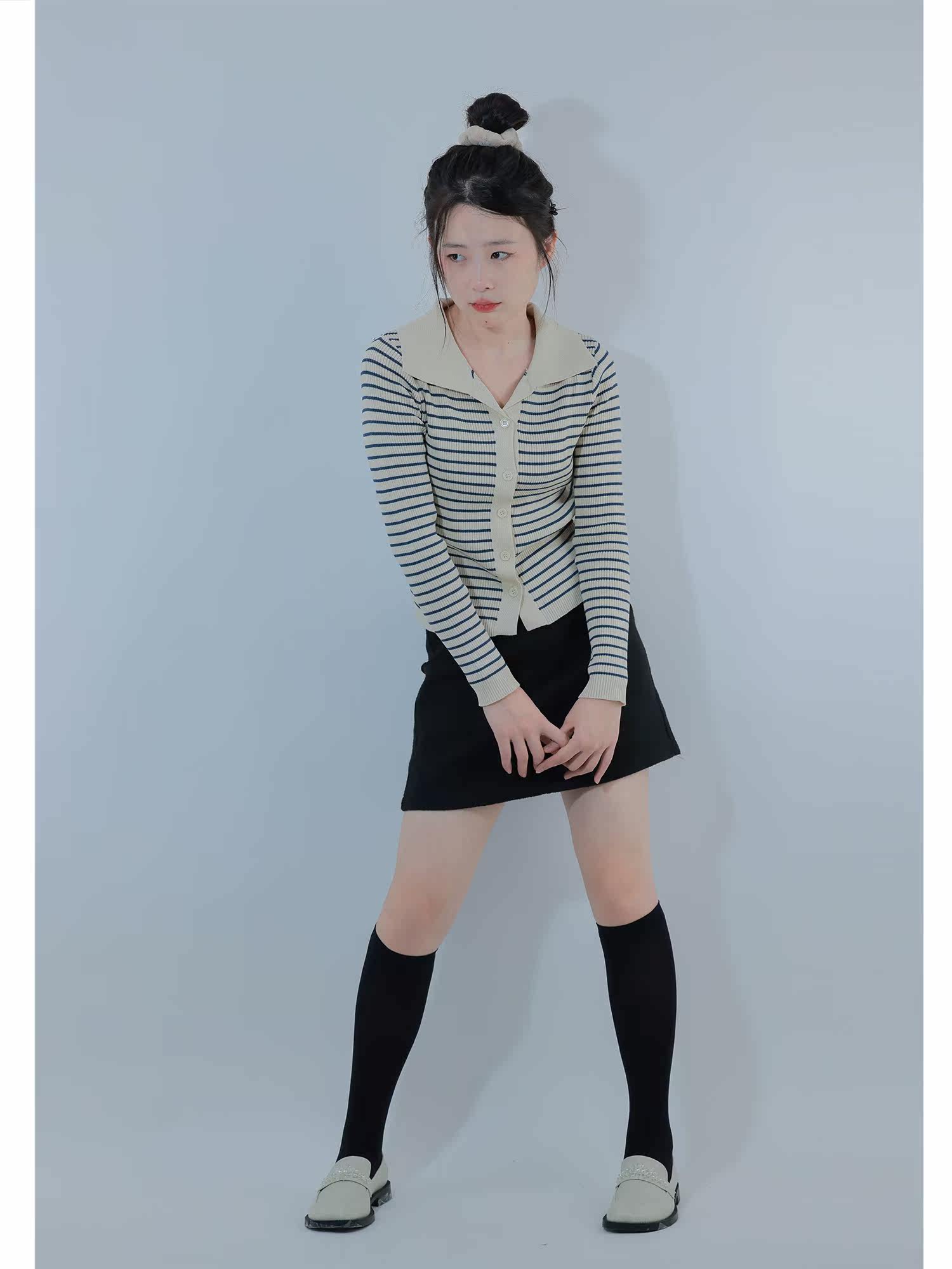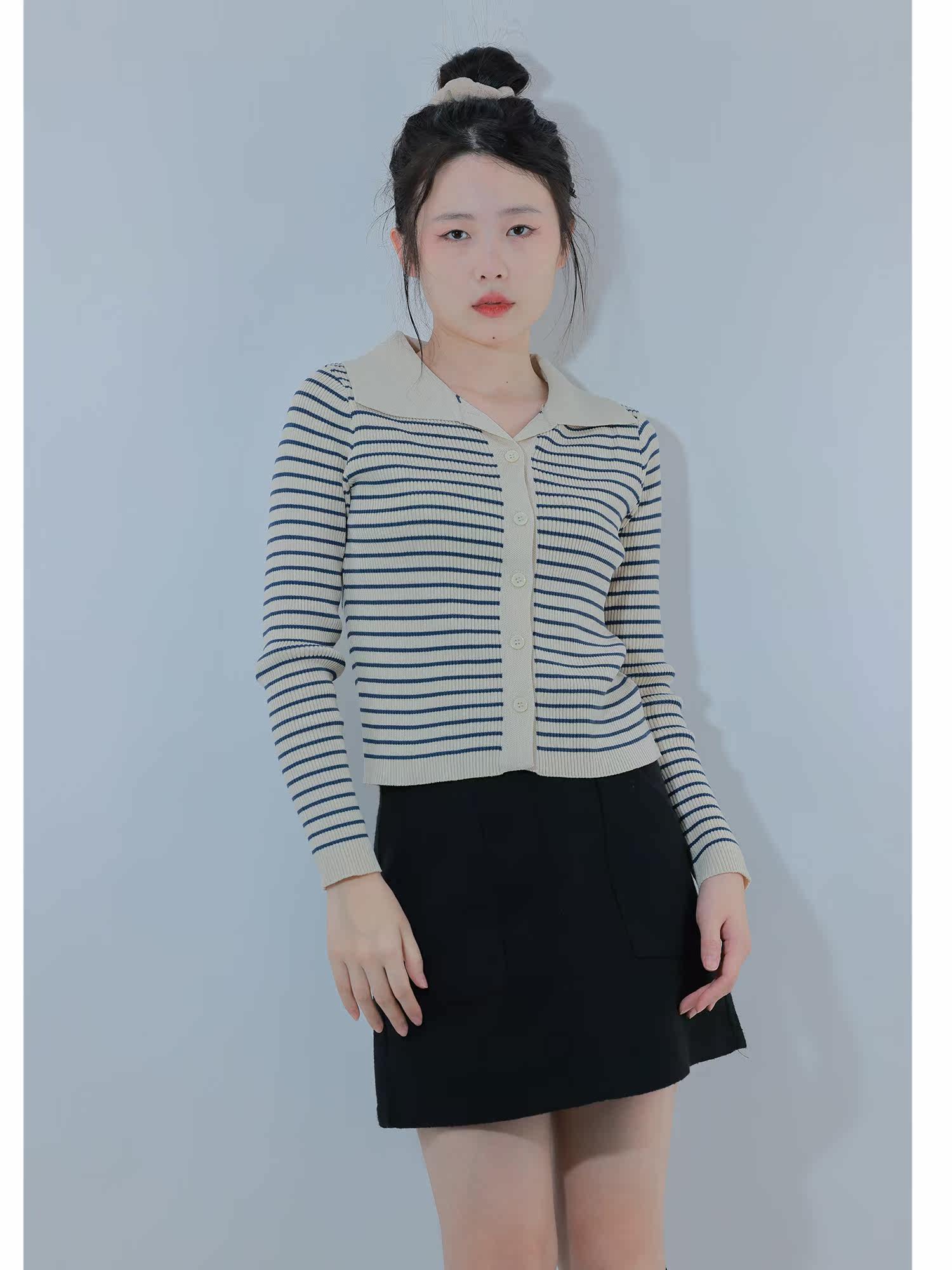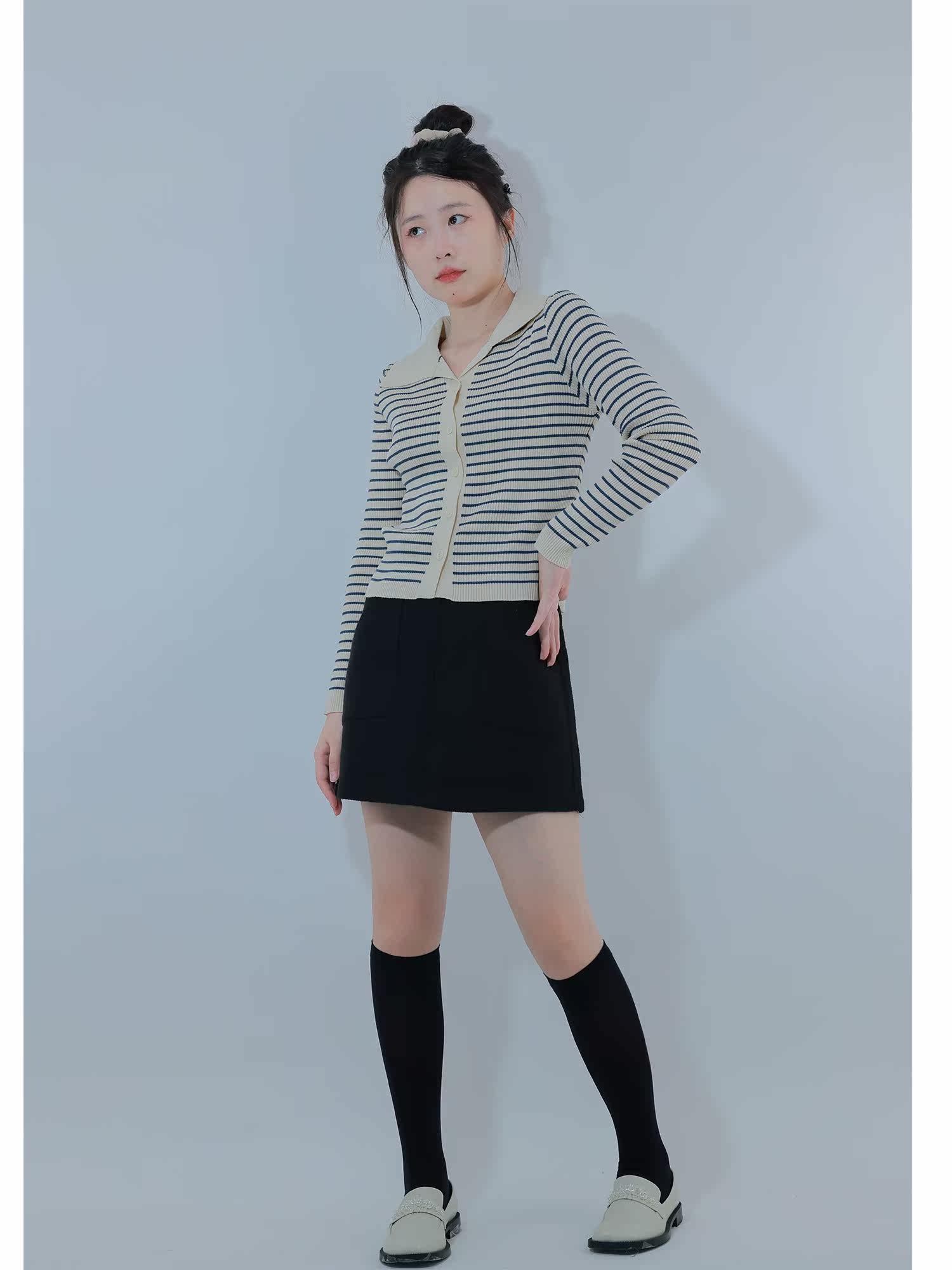 Sister Hu's slim-fit French temperament striped POLO collar slim-fit sweater design sense 2022 autumn and winter new style