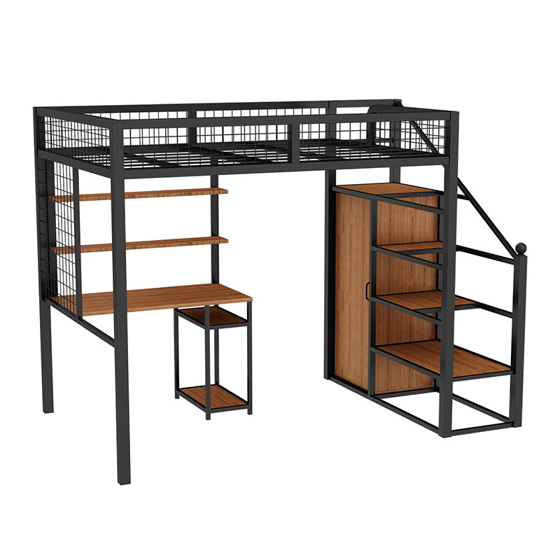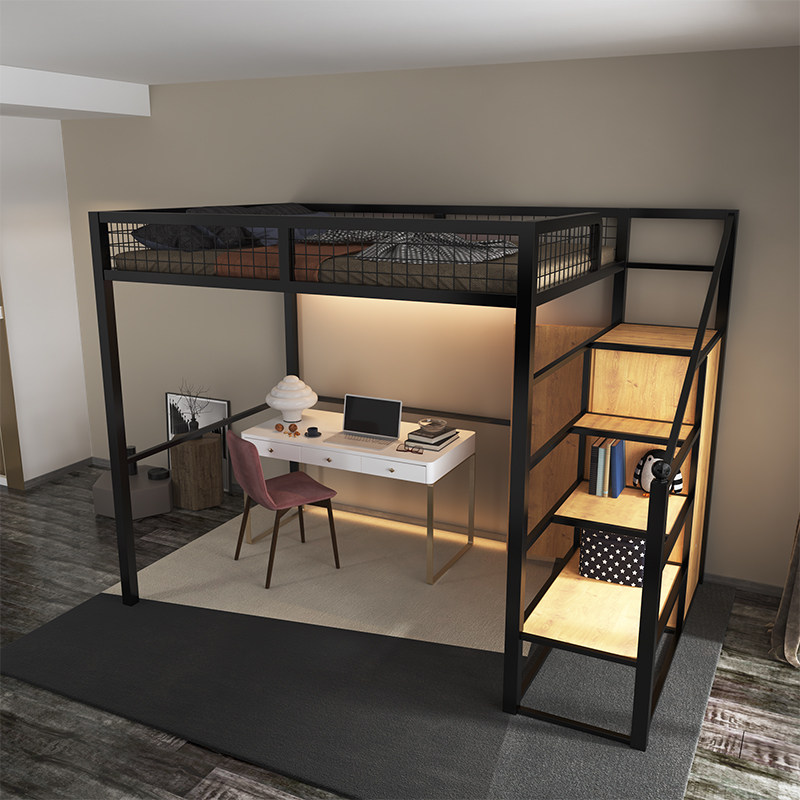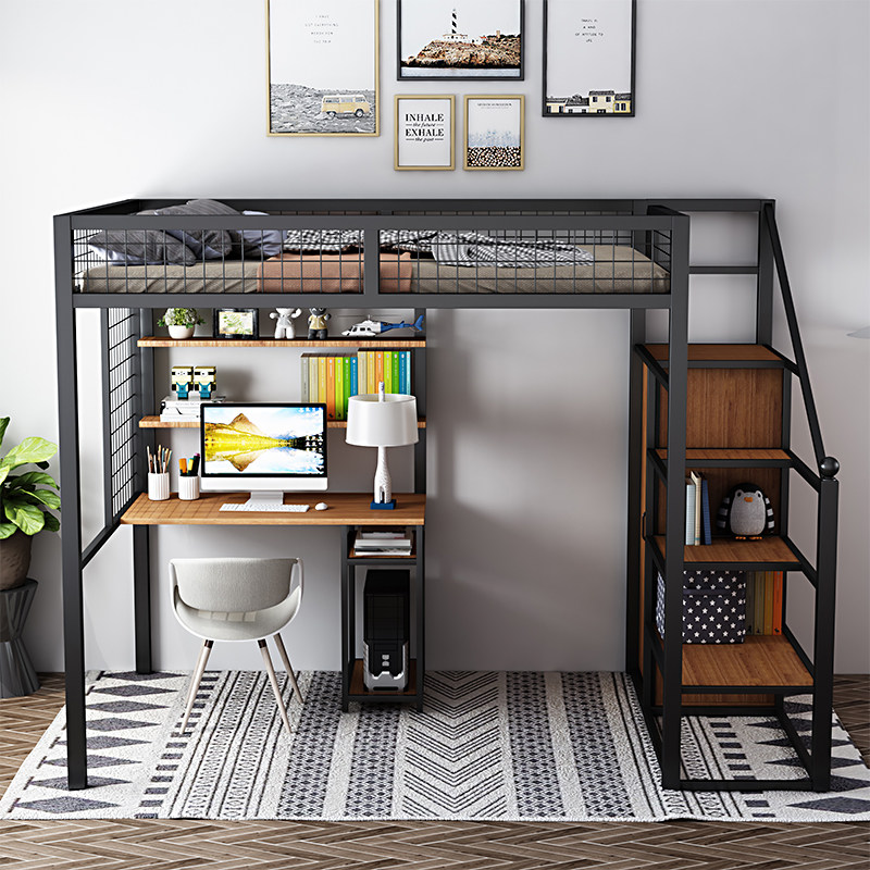 Bed under bed empty table attic bed upper bed dormitory elevated bed adult double deck iron art high and low bed