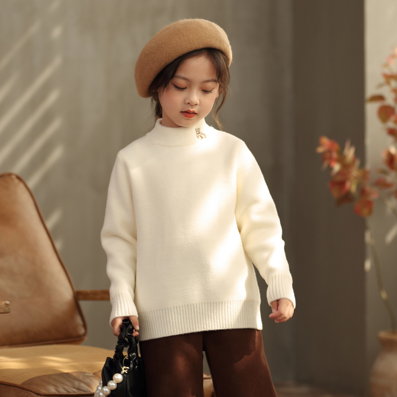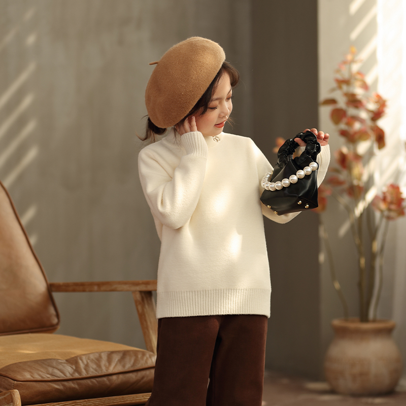 Girl 2023 Autumn Winter New Crystal Yarn High Collar Sweater Collar Fur Coat Cute Integrated Suede Flannel-Taobao