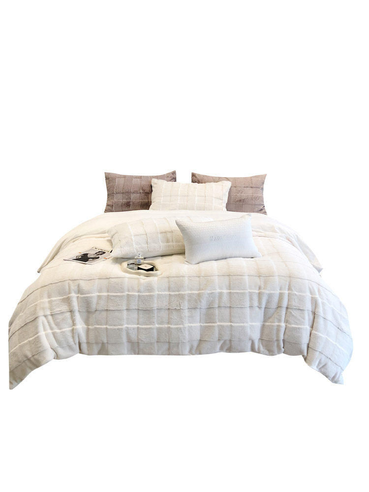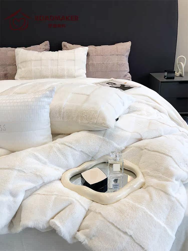 Rhodes Meco 2022 autumn and winter high-end Suli long-haired warm four-piece set light luxury cut velvet thickened ultra-thick quilt cover