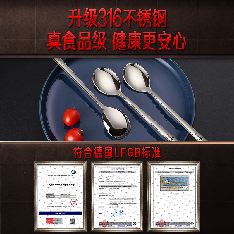 German three-four-steel long handle stainless steel spoon 316 food grade home 304 tablespoons fork soup spoon children spoon-Taobao
