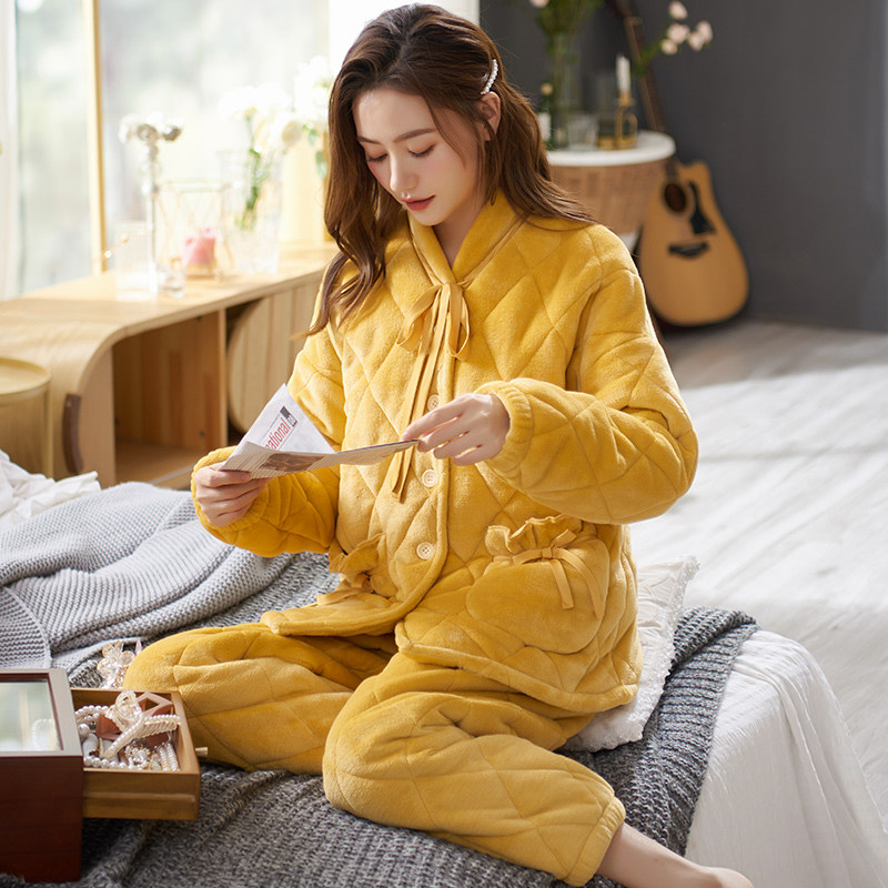 Winter Cotton Thick Pajamas Woman Coral Velvet Clothing Cotton Accelerated Heating Household Cotton Cotton Two Pieces