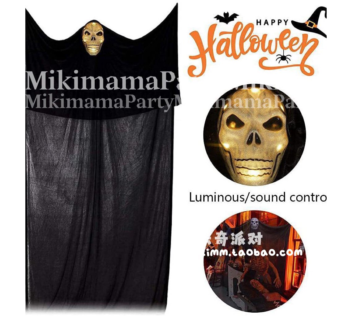 Cross-border Halloween luminous gauze hanging ghost explosion style ghost festival garden gauze mask hanging ghost decoration props
