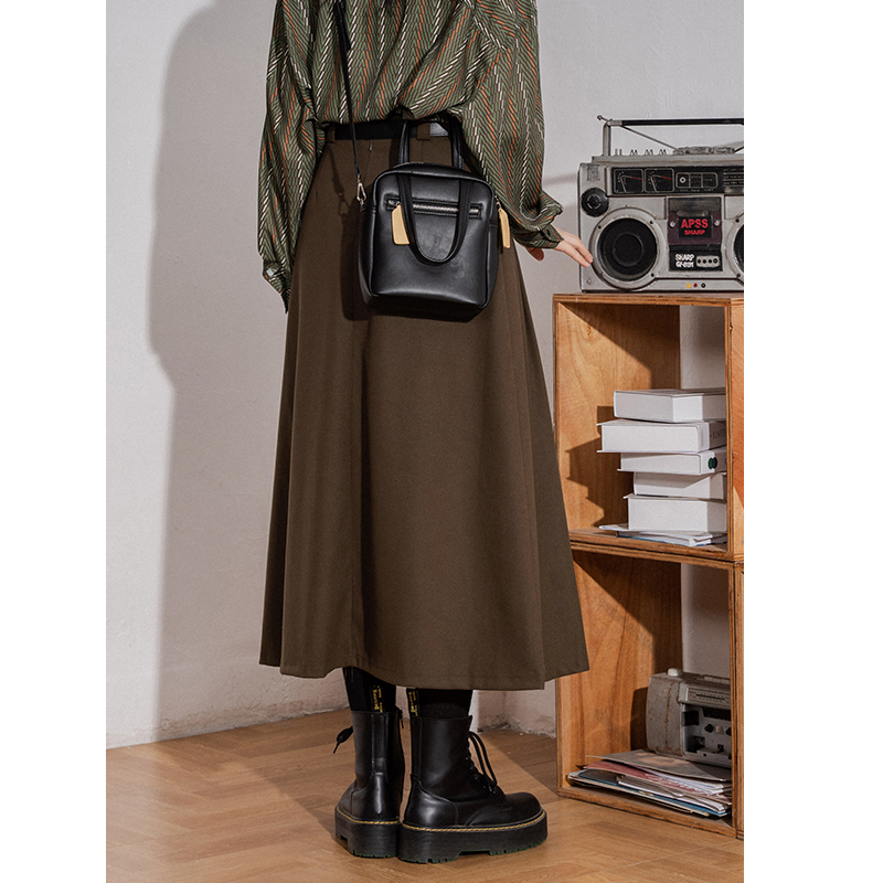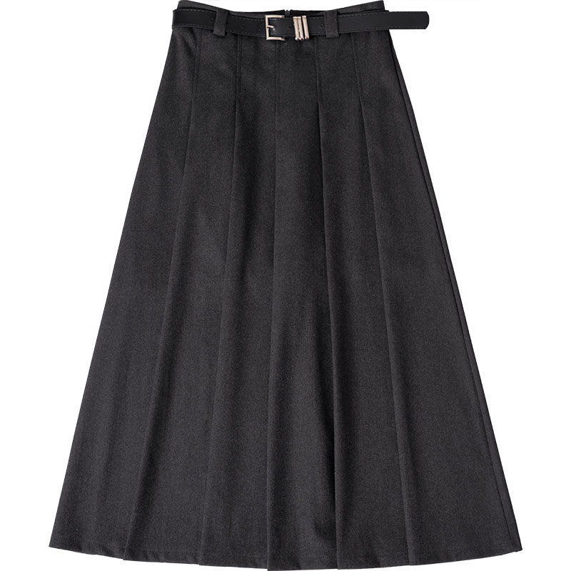 Retro high-waist mid-length woolen skirt women's pleated skirt in autumn and winter shows thin and thick texture A-line woolen skirt