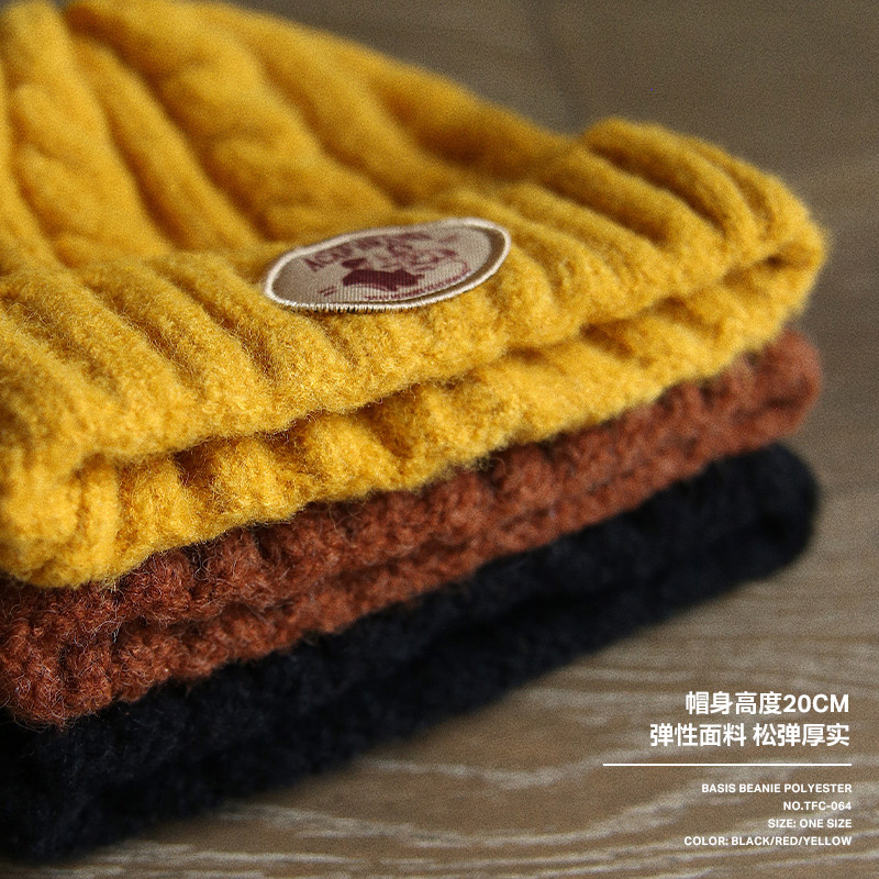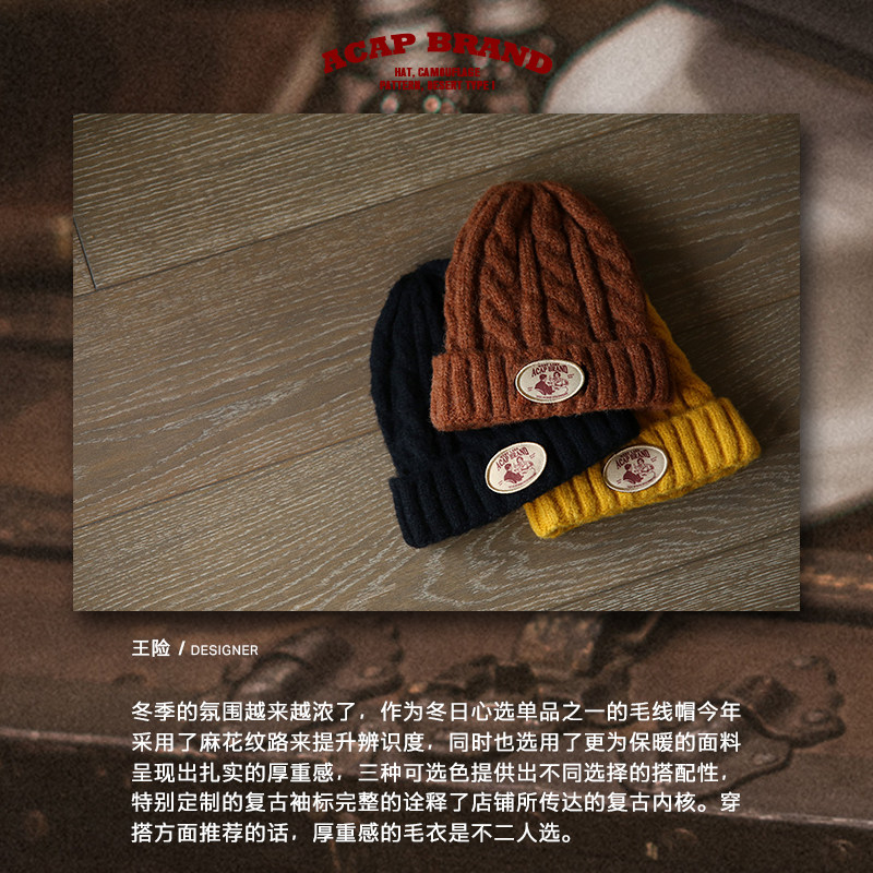 Acap Brand Warm Wool Thread Knit Cold Hat Autumn Winter Red Large Head Circumference Cute Protective Ear Female men's section