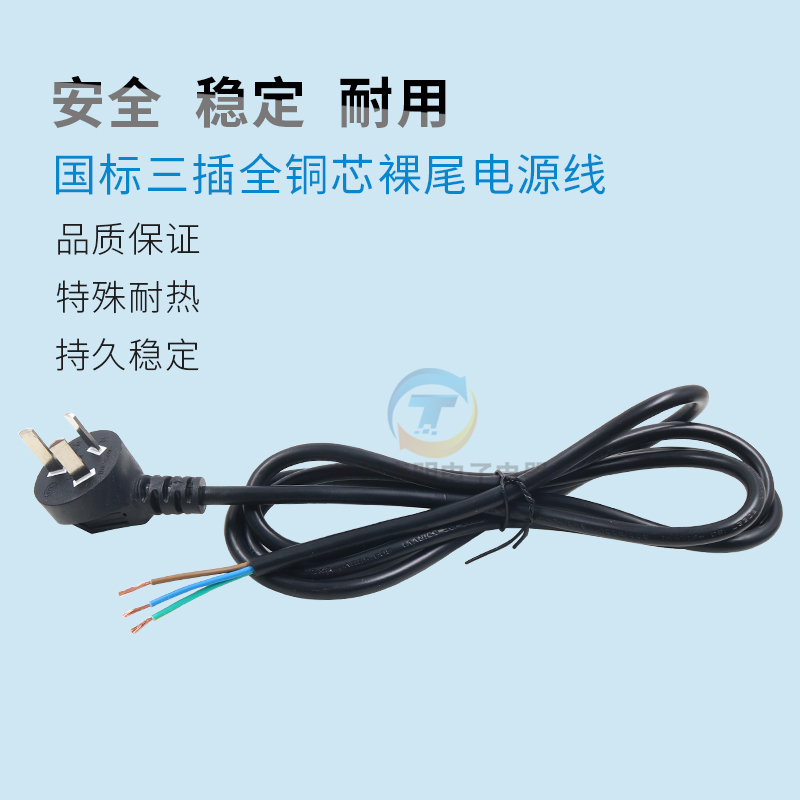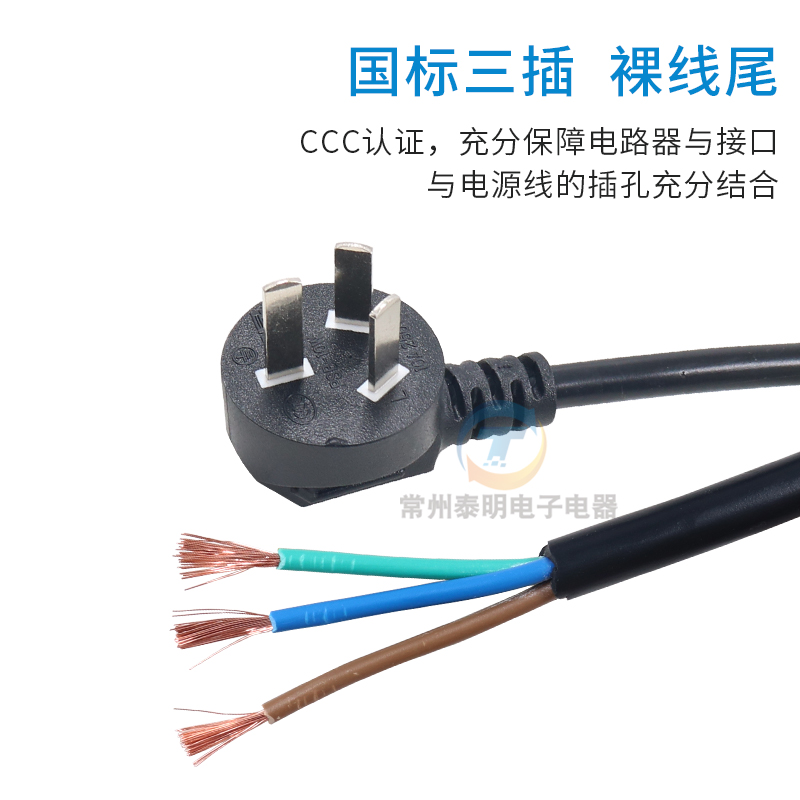 Three-3-core power cord item plug with wire national standard high power 10A single head nude tail 0 75 1 5 1 square 5 0