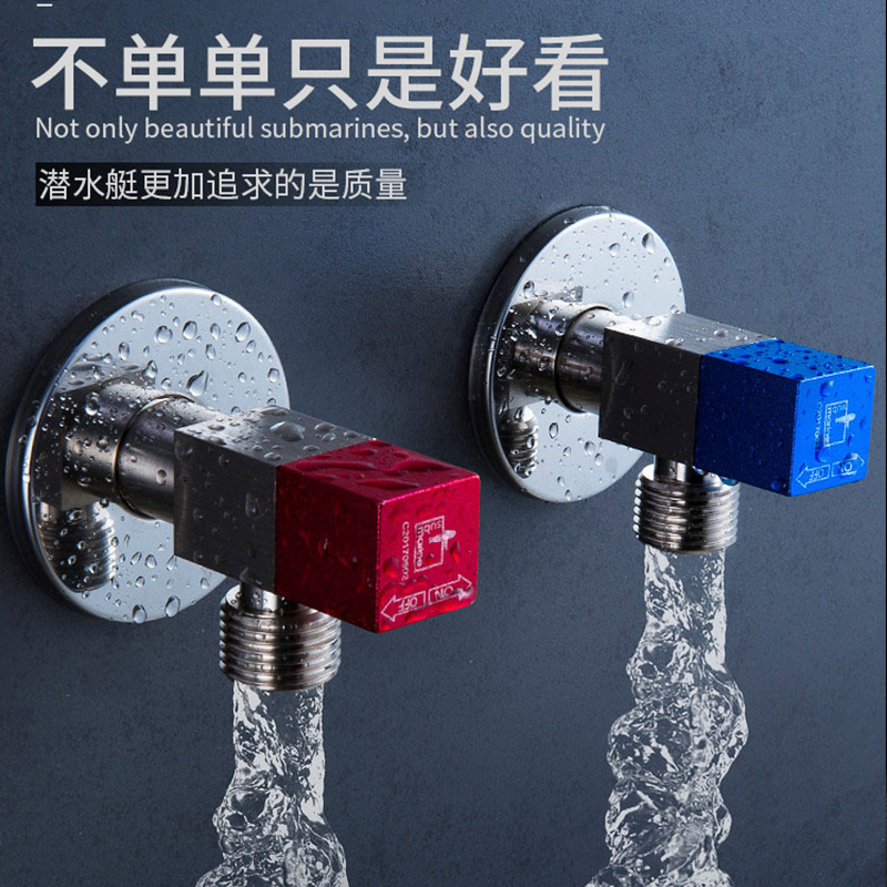 Diving boat angle valve hot and cold triangular valve water heater Eight-word valve switch full copper thickened lengthened toilet water stop valve-Taobao