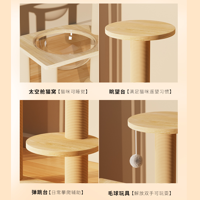 Space Cabin Cat Climbing Shelf Cat Cowl Catwalk catwalk Jumping Bench Grab Pole Small not to cover kitty Supplies Grand-Taobao