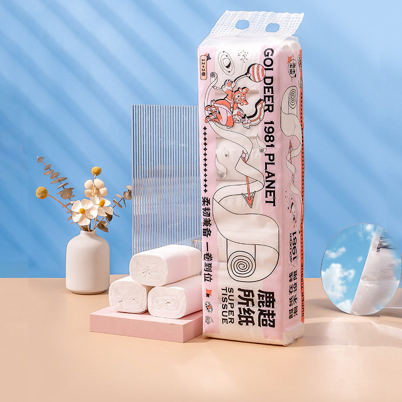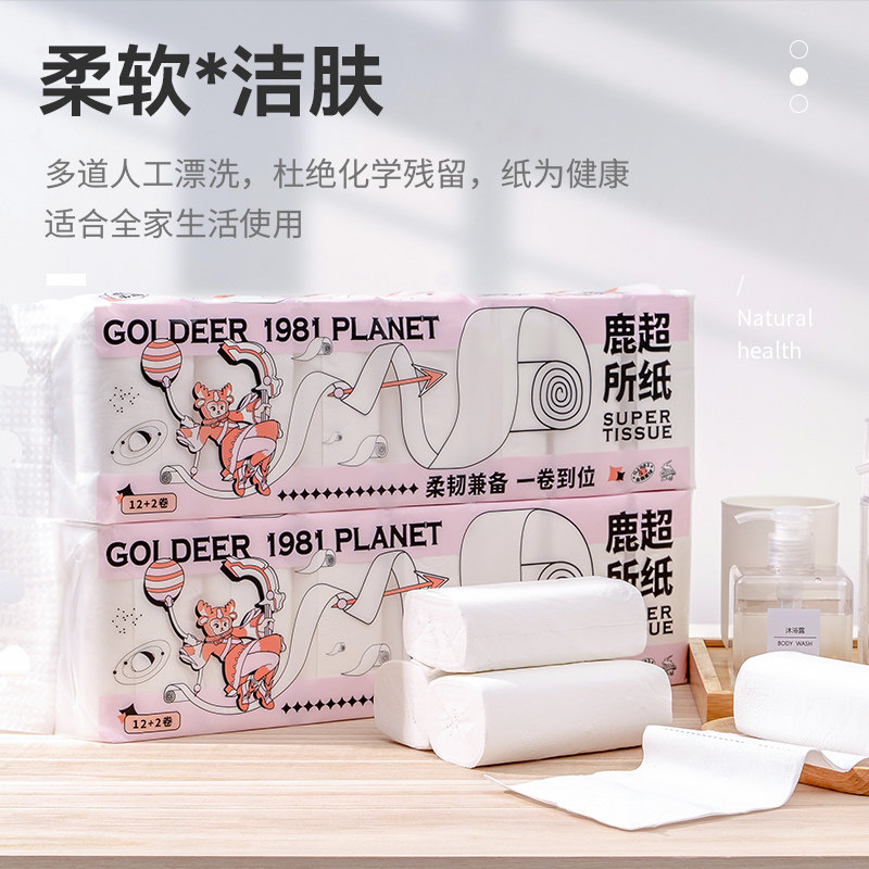 Golden deer roll paper core toilet paper 4D stereo pressed pattern tissue 4 layer family full box 1 and 14 rolls