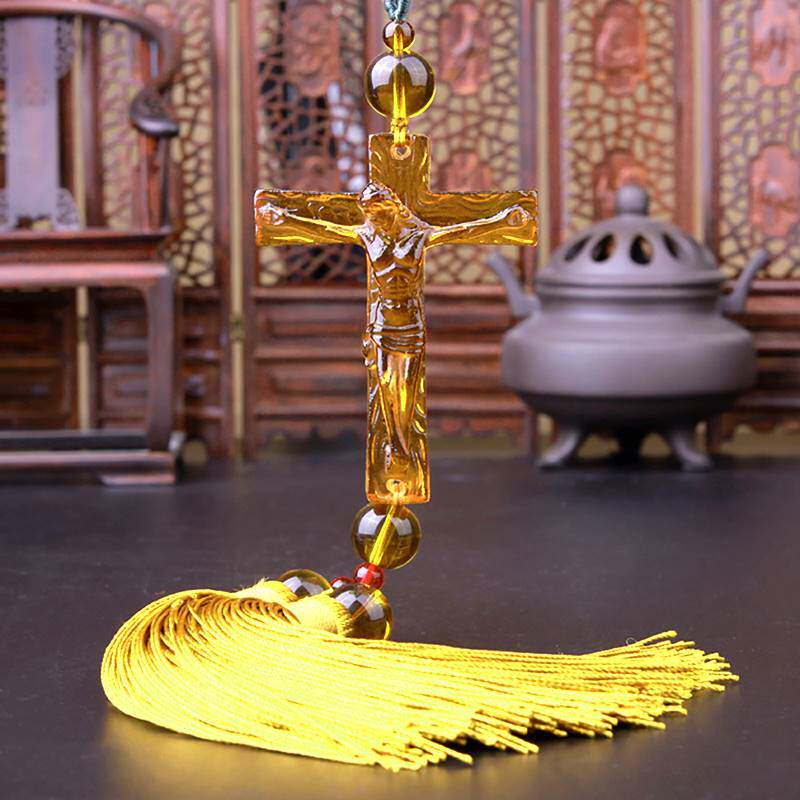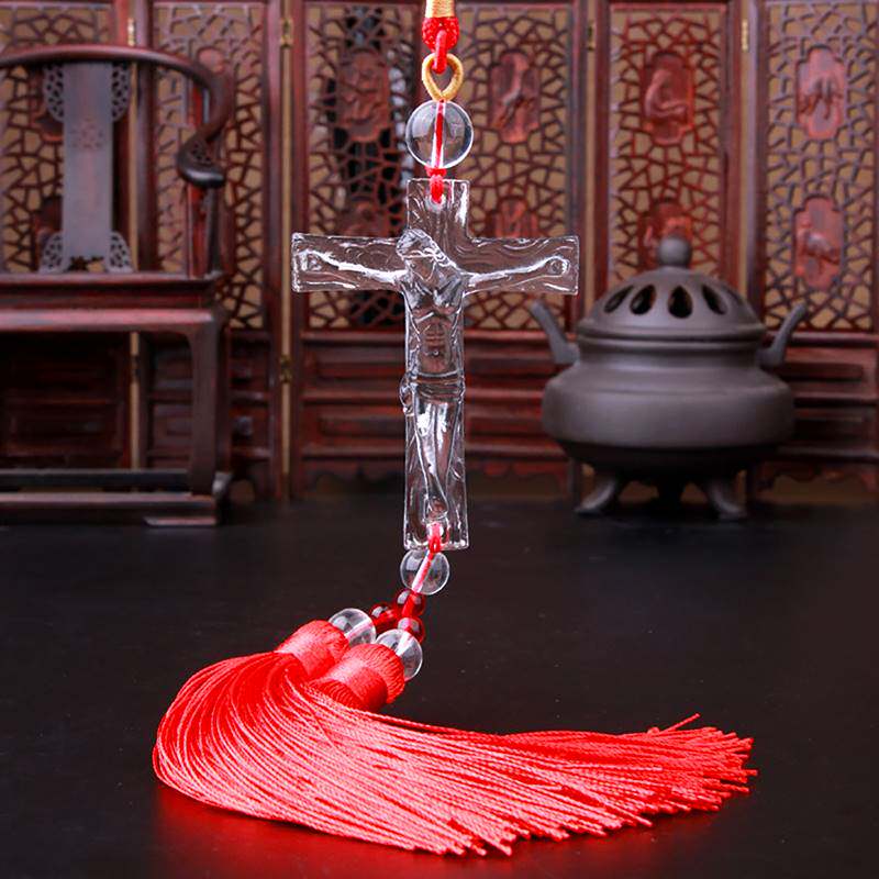 Glass cross car interior pendant crystal car high-end rearview mirror pendant decoration car interior decoration