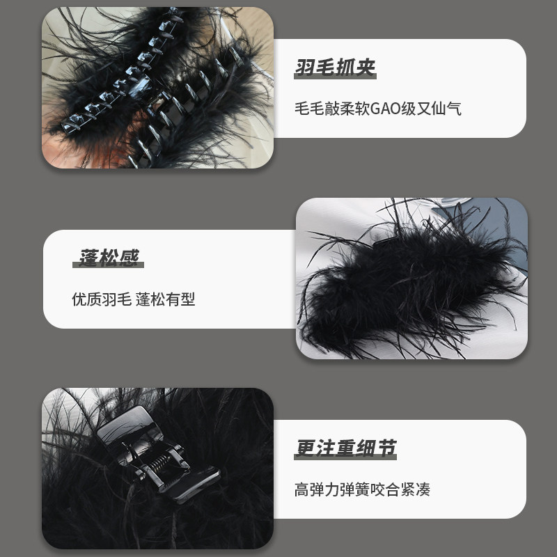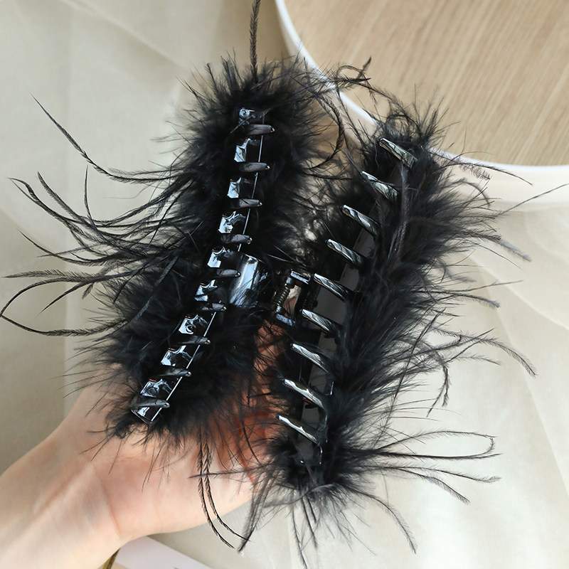 Oversized ~ Pure Desire Ostrich Feather Hairpin Female Back Head Grab Clip Hair Accessories Shark Clip Premium Headwear