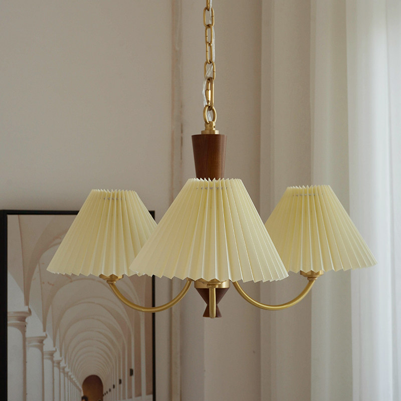Japanese style retro wabi-sabi style living room chandelier dining room table all copper homestay master bedroom solid wood red pleated lamps - Taobao