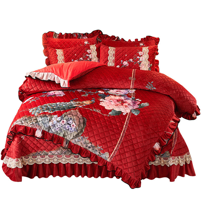 Light luxury winter thickness cotton bedbed cover four pieces of high-end double-sided coral velvet bed