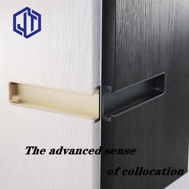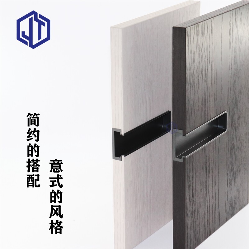 Italian narrow side Poliform pulls hand-slotted closet door drawer cross-mounted embedded invisible handle gray