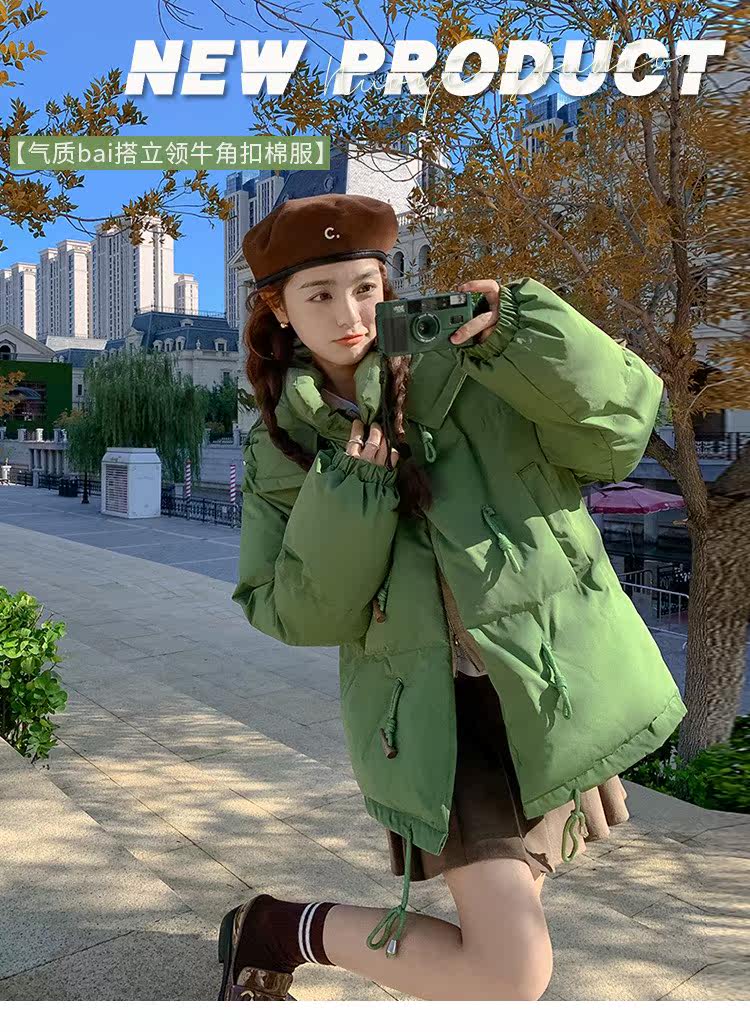 Green cotton cotton clothes thicken autumn and winter 2022 new warm gas student cotton coat