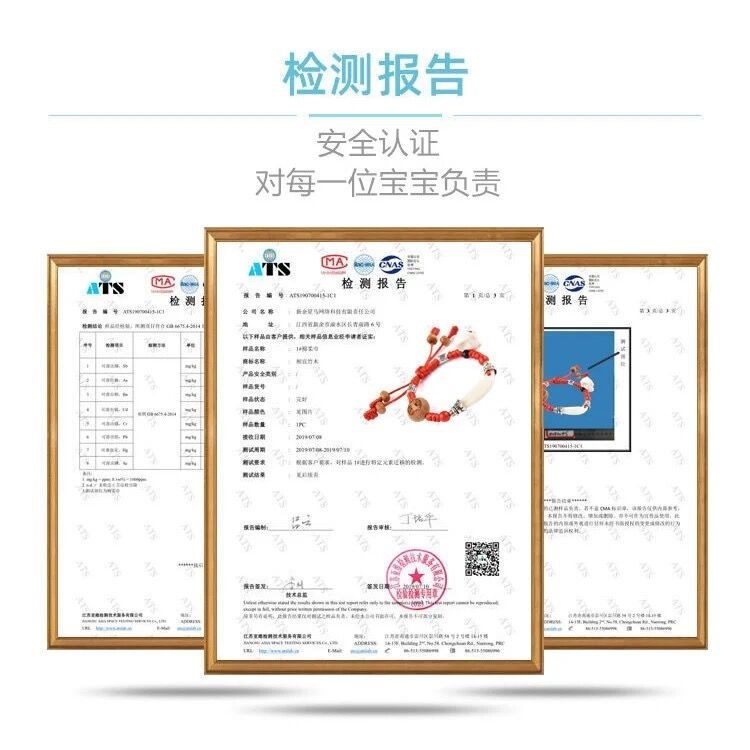 (Fidelity) Anti-scaring peach wood core pig bone pressure scaring red rope anklet real black dog tooth bracelet for babies and children