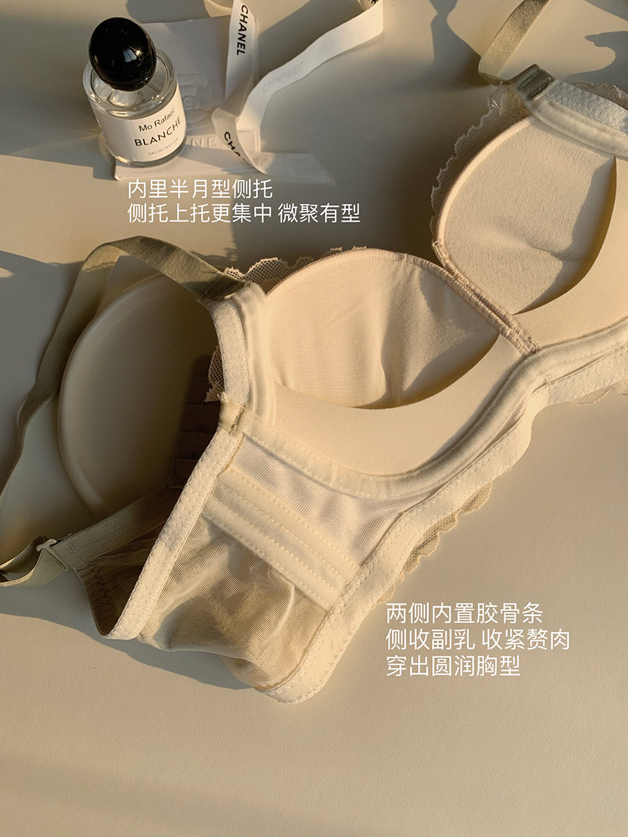 OllaBra lace creasing splicing small chest comfort lingerie without steel ring on thin lower thick coalesch with big bra woman-Taobao