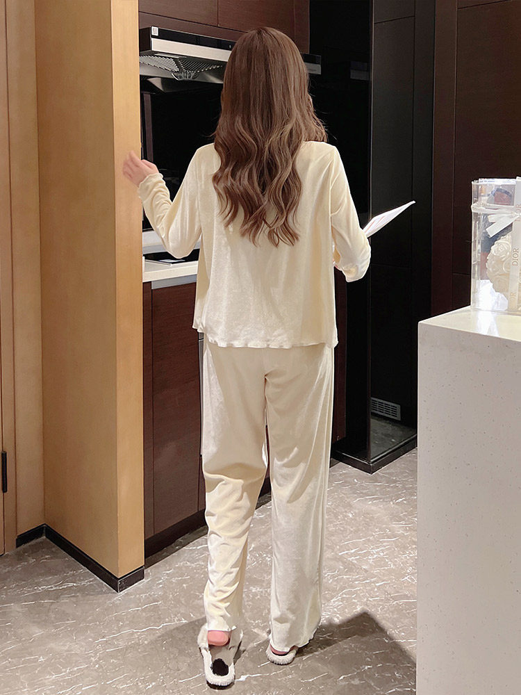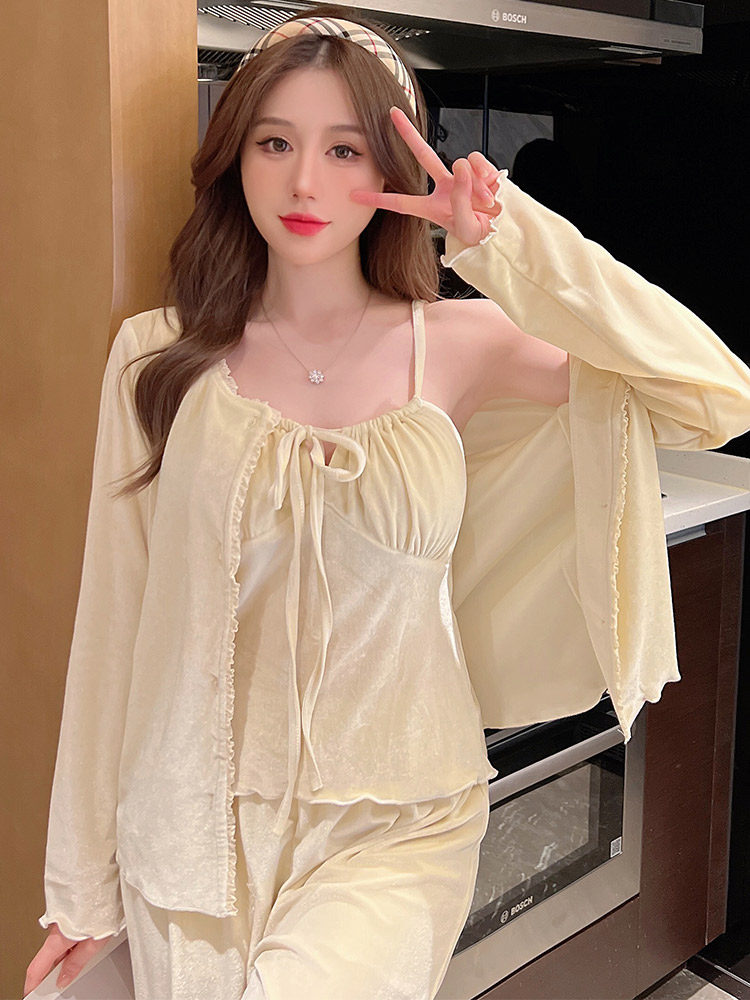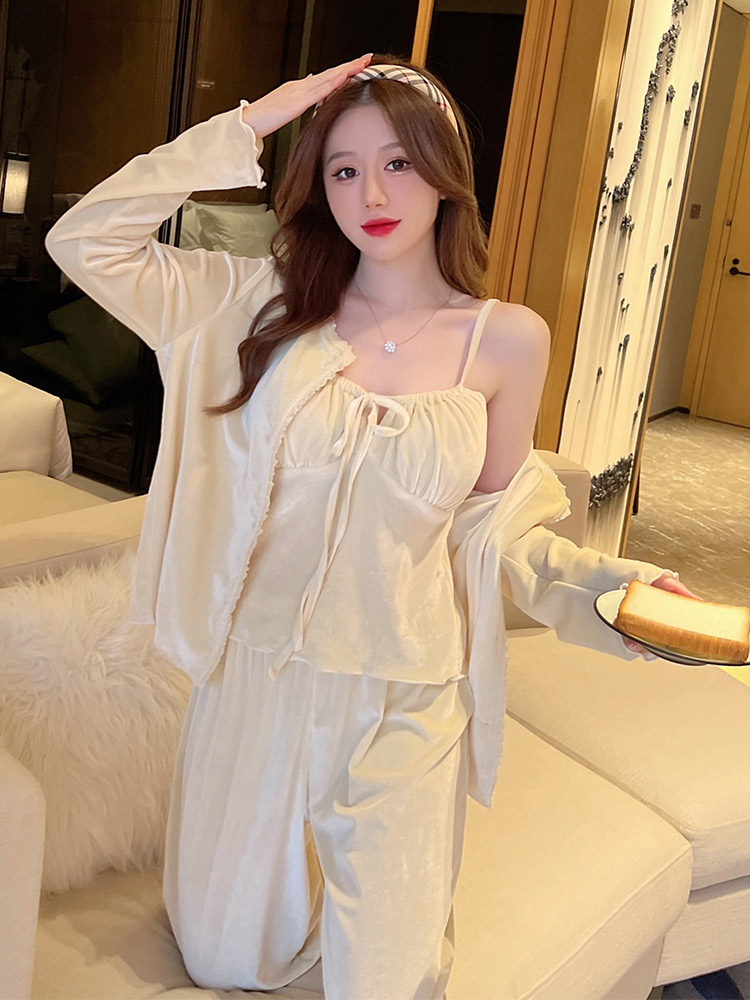 2023 New Pajamas Three Piece Woman Winter Hanging Long Sleeve Lingerie with Brush Paddle - mat Velvet Home Clothes