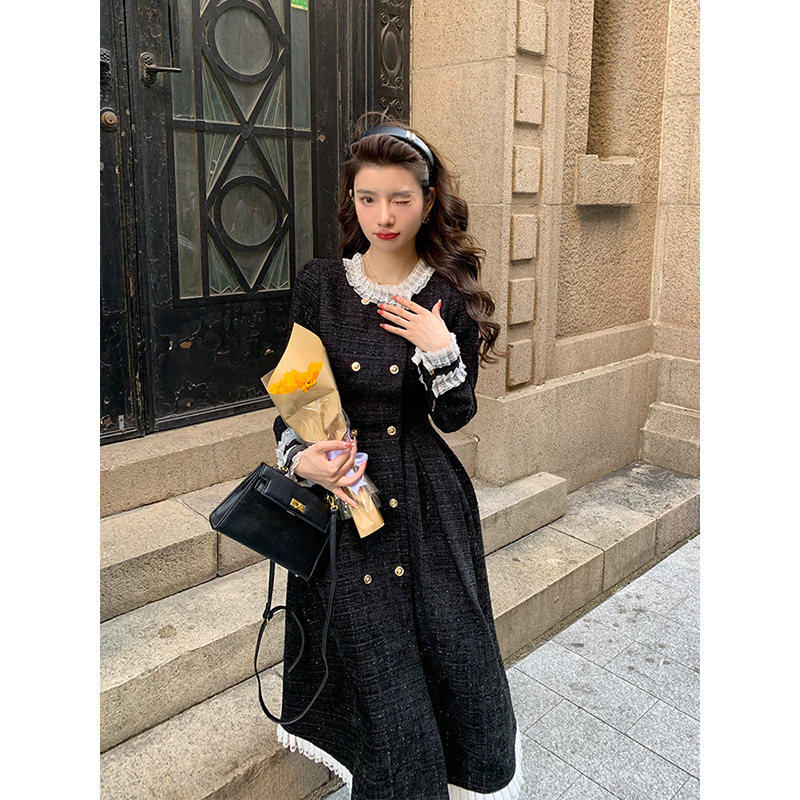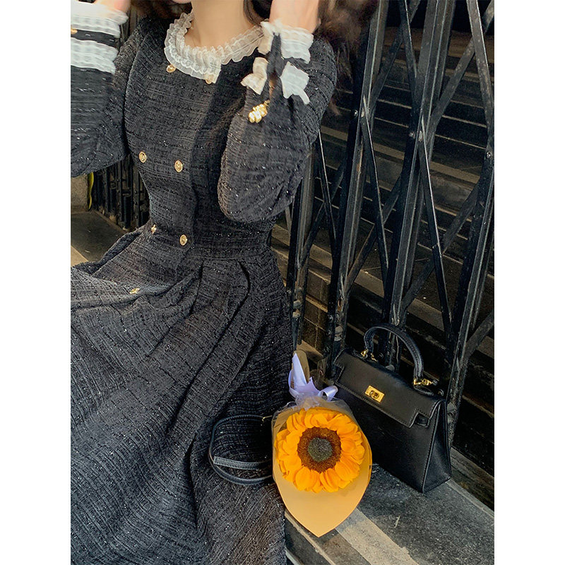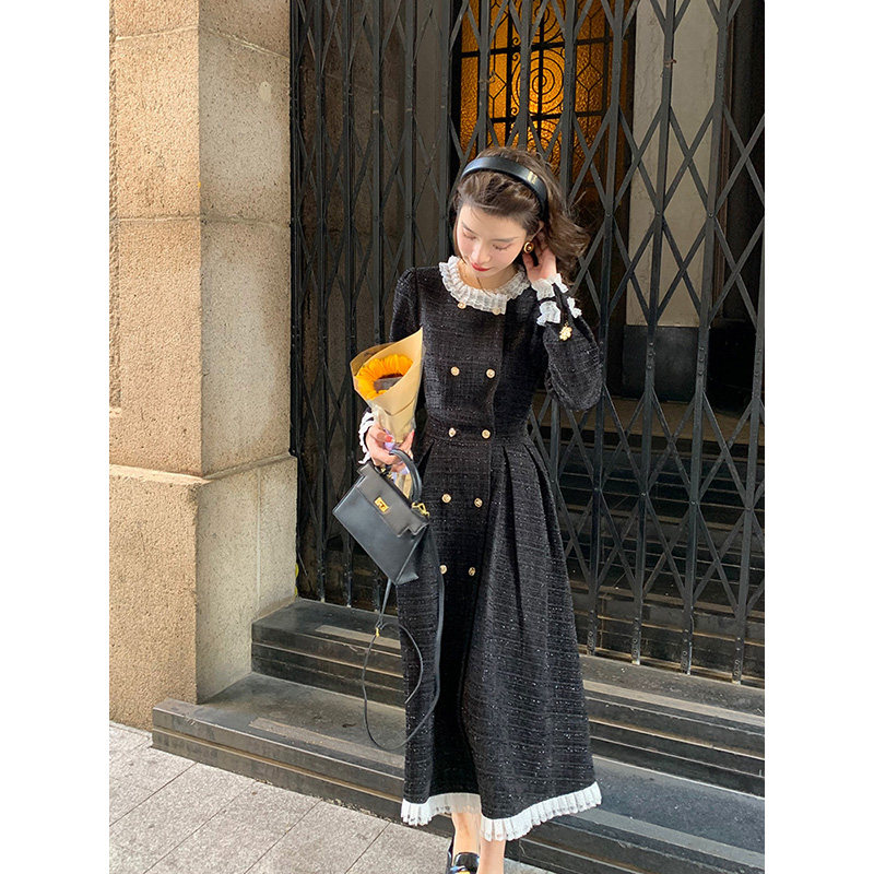 Deng Sixsix Method Famous Temperament Thickening Lamp Core Suede Small Scent windy with dress Skirt Woman Autumn Winter Heben Wind Little Black Dress-Taobao