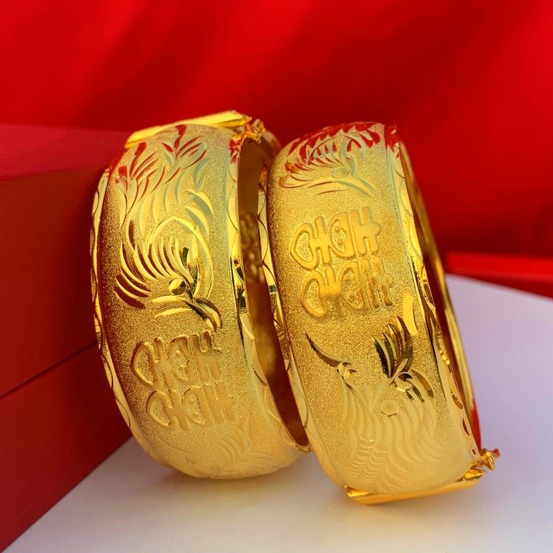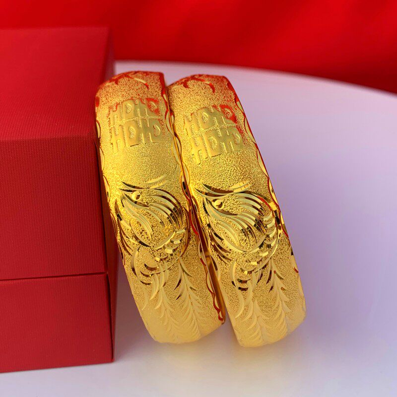Plated Sand Golden Dragon Phoenix Bracelet Bridal Bride Wedding Hardware Suit Imitation Gold Jewelry Wedding Triple Gold Escort-Taobao