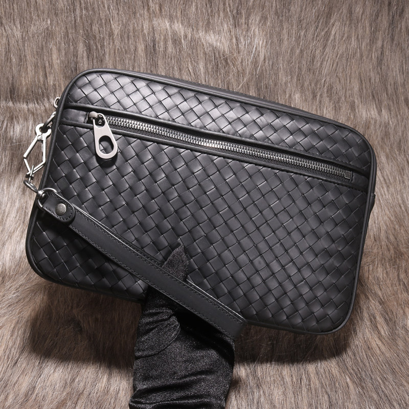 Genuine leather woven handbag men's business casual clutch bag large-capacity clutch bag 2022 new trendy storage bag men's bag