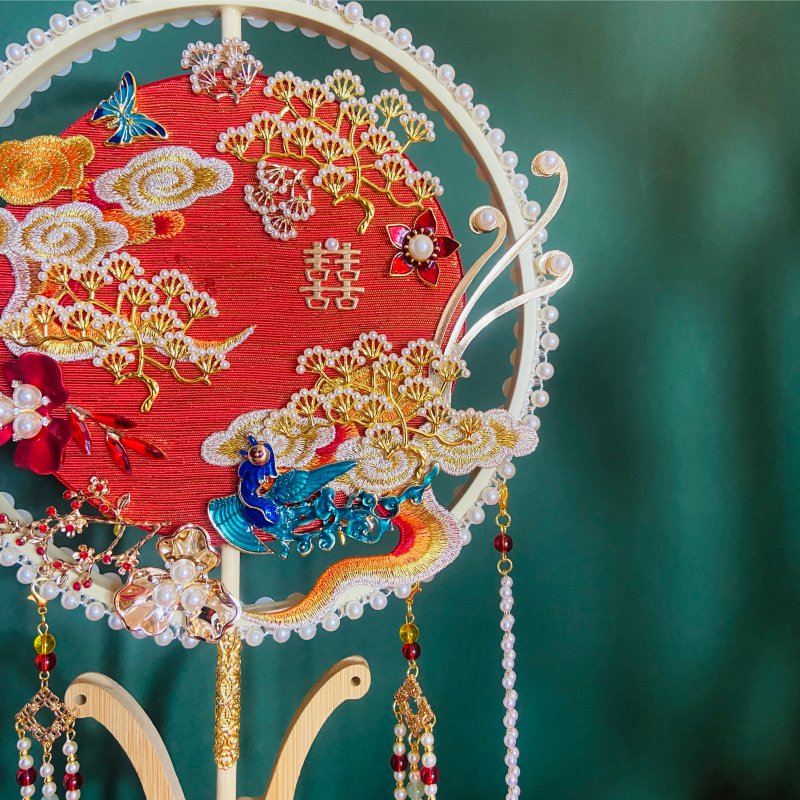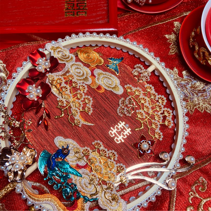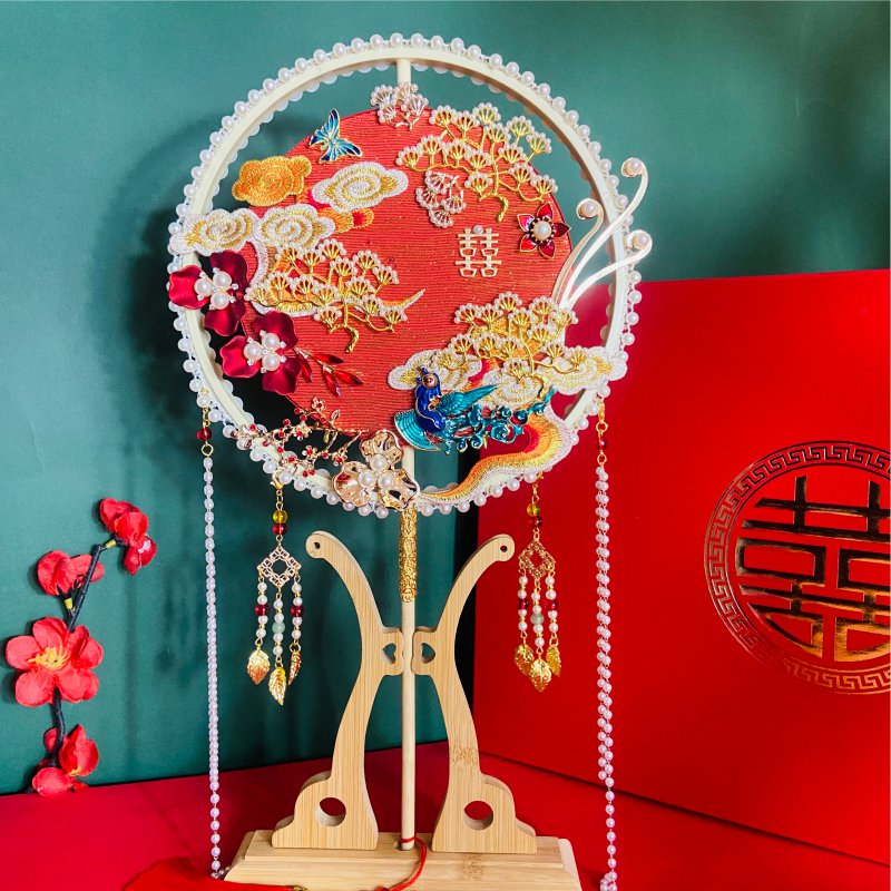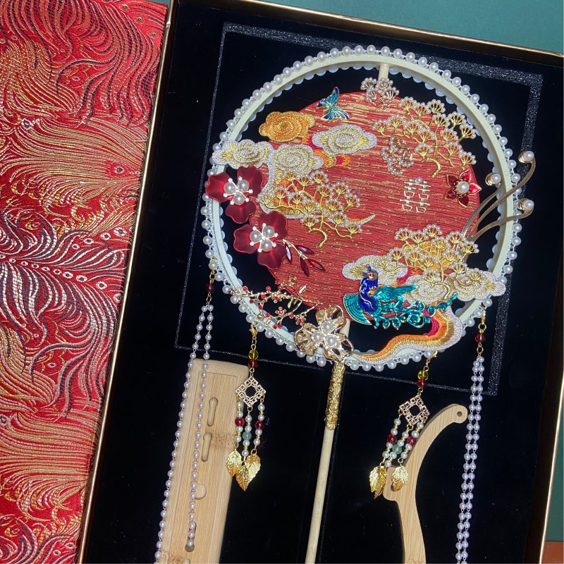 Champagne fan bride marriage materials packaged marriage Chinese wedding gold Xiuhe fan fan manual diy