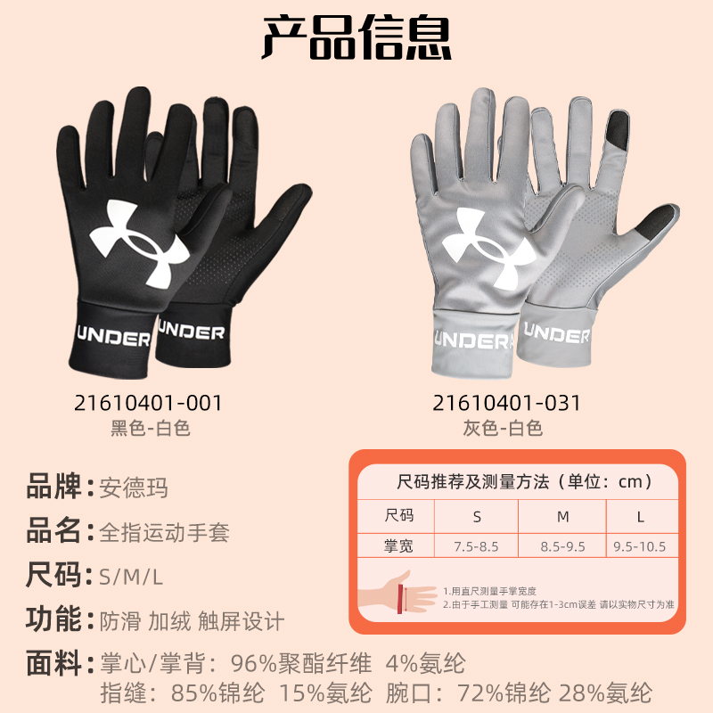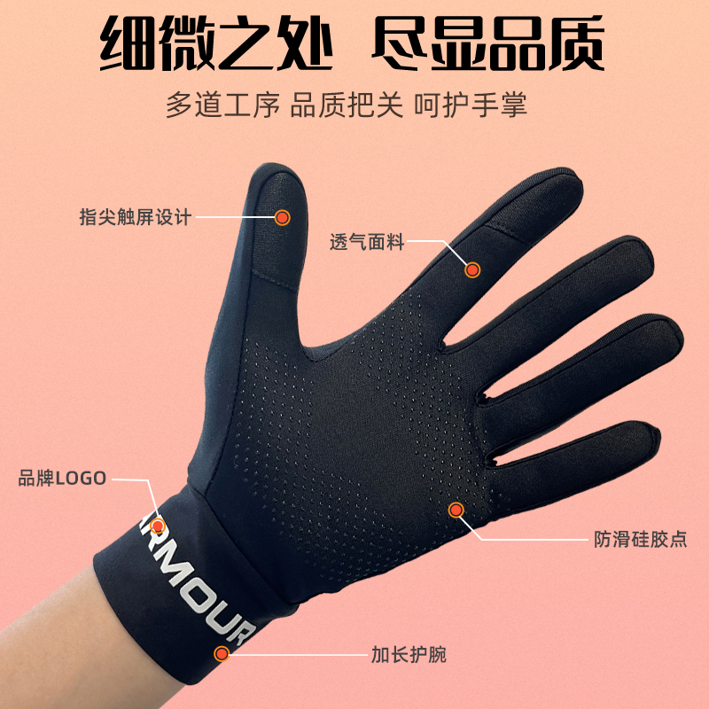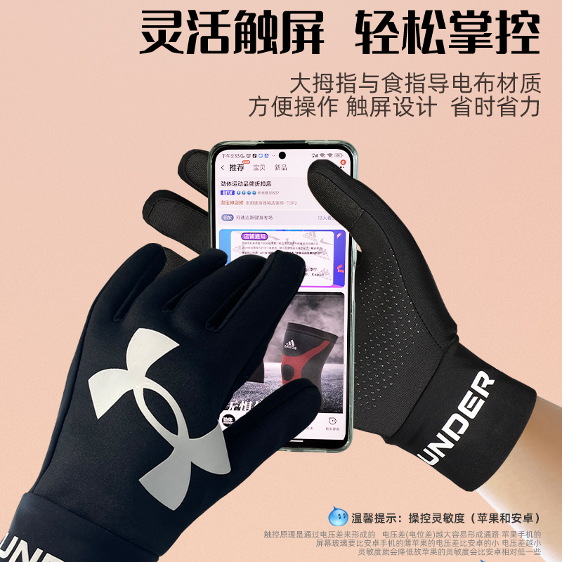 UA Anderma sports gloves for men and women the same style riding fitness autumn and winter plus velvet warm full finger non-slip touch screen wear-resistant