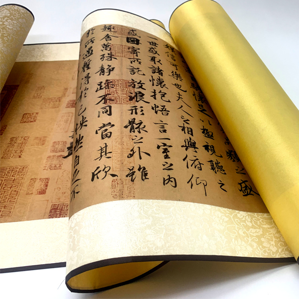 Wang Xizhu Langting Order Book Calligraphy Decoration Dragon Original HD Micro-Skin Silk Copy Scroll