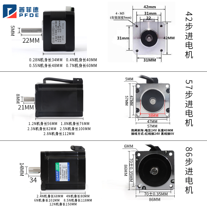 PFID 42 57 86 Stepper Motor Set Two-Phase Four-Wire 1 2 1 8 2 5 8 5N Factory Direct Sales