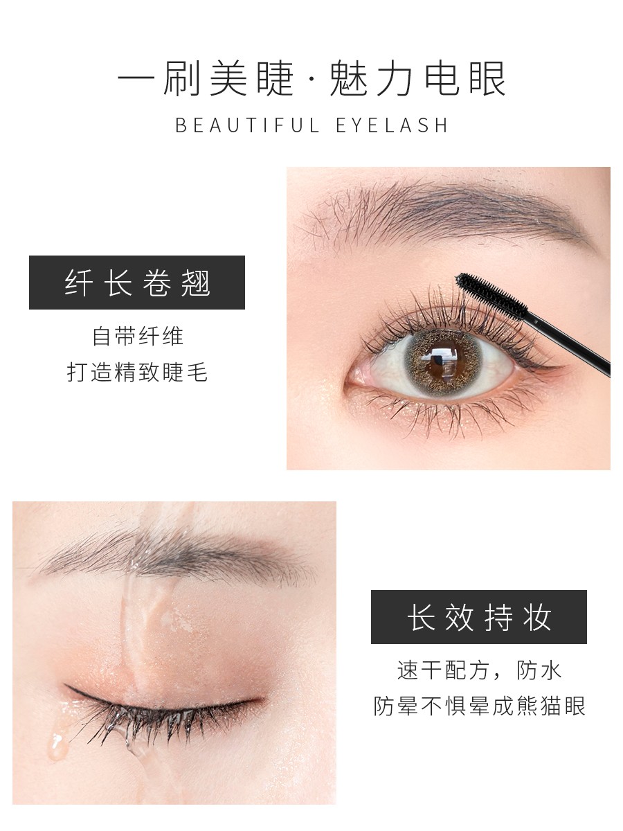 Piara mascara fiber long thick dry roll of the waterproof stereo is not easy to faint and beat the bottom-up black Pei