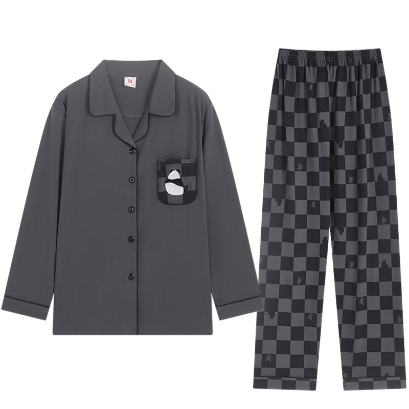Beast Pajamas Autumn and Winter Home Service Couples Cotton Long-sleeved Embroidery Panda Plaid Suit for Men and Women