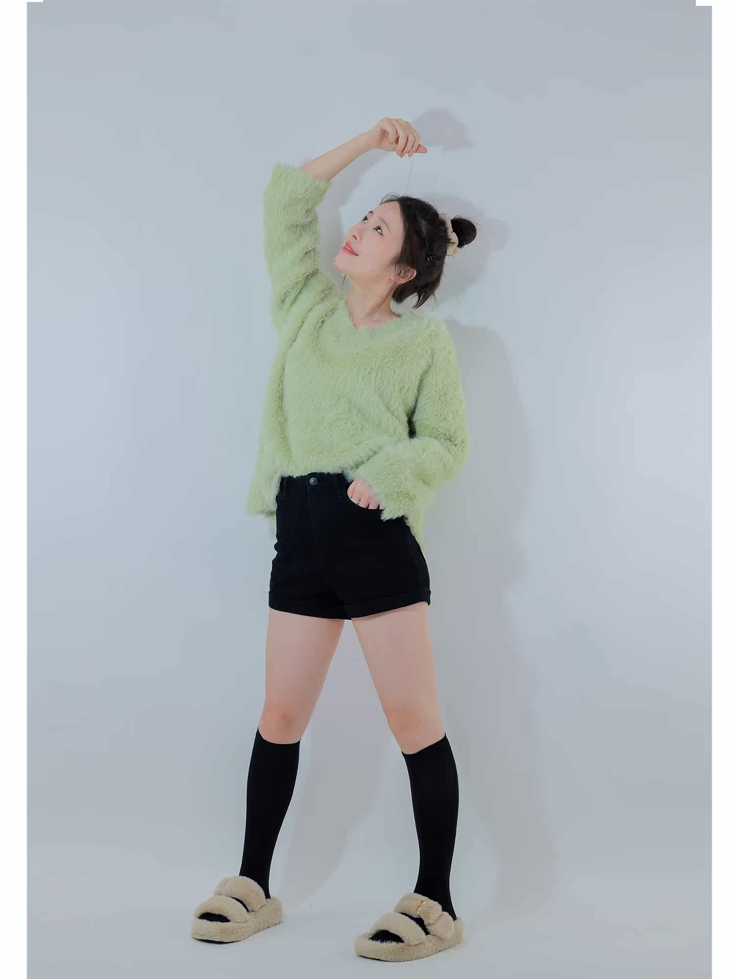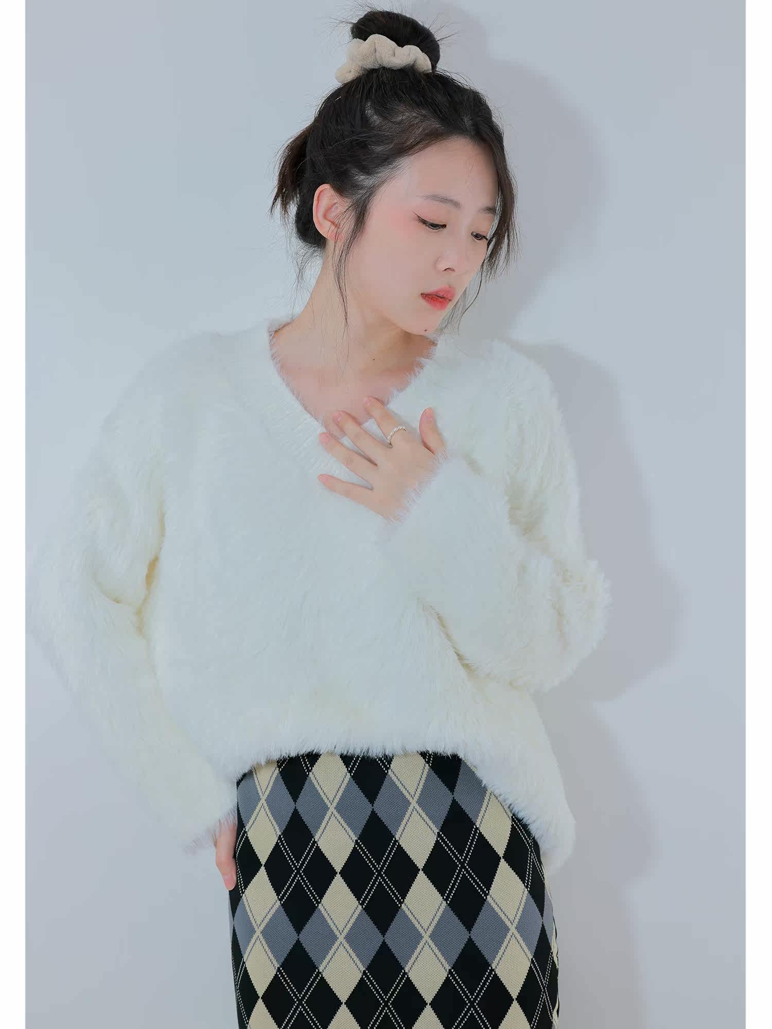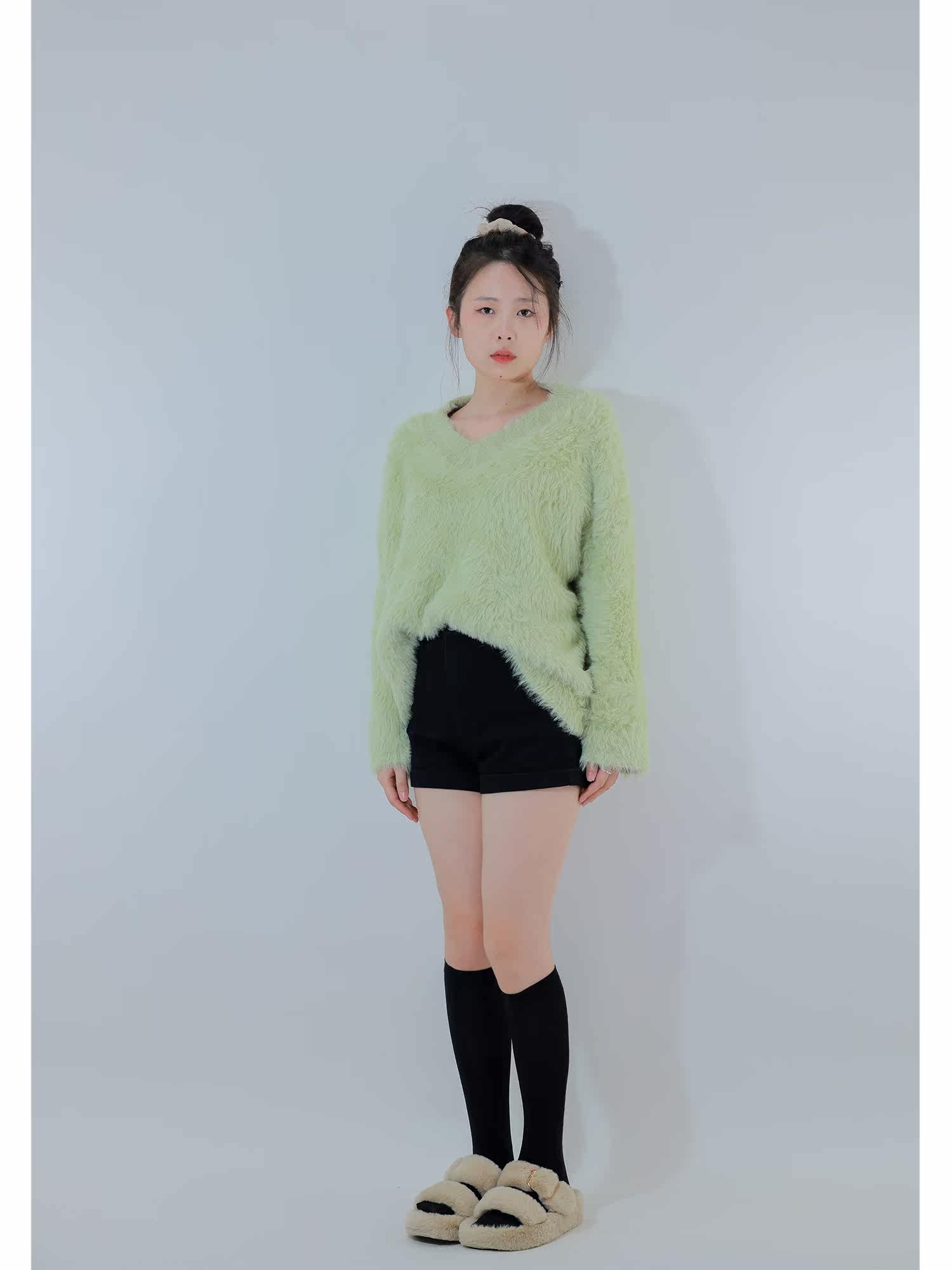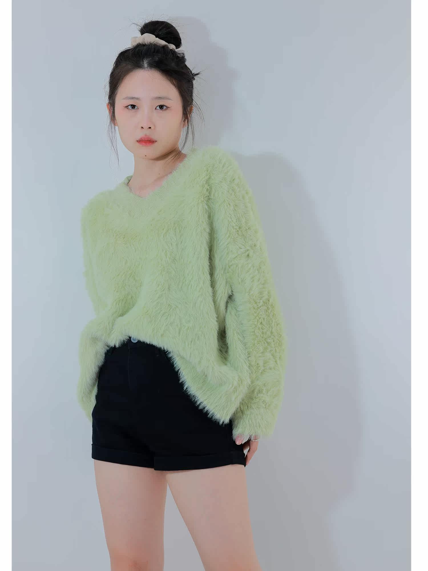 Sister Hu 2022 new sweater women's autumn and winter lazy mohair outerwear v-neck imitation mink velvet soft waxy top