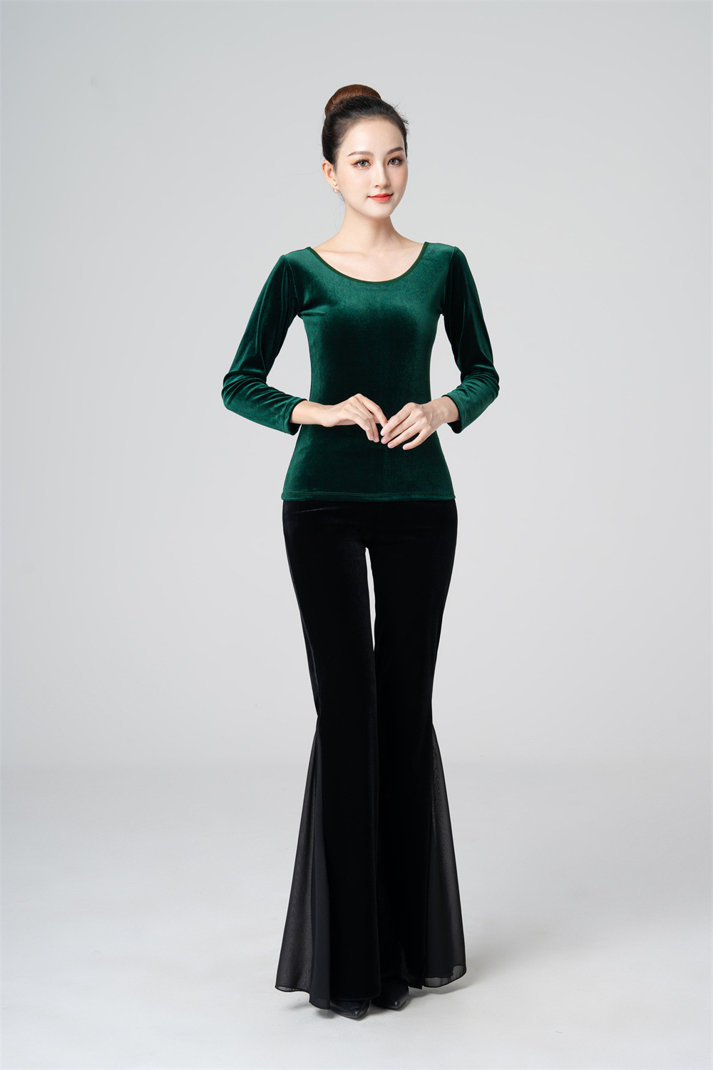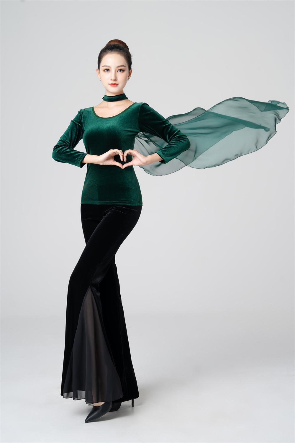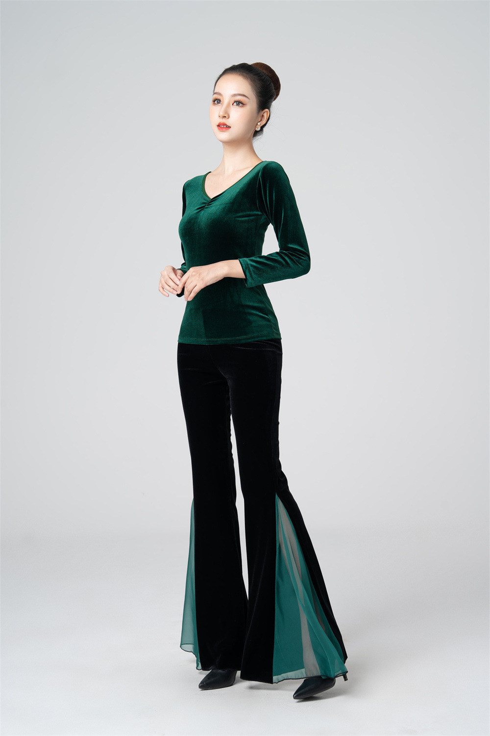 V - collar green split sleeves Pulling green labels Neck veil V-collar green split sleeves Black large lappers Neck veil V-collar green split sleeves Black small horn pants Neck round neck collar green split