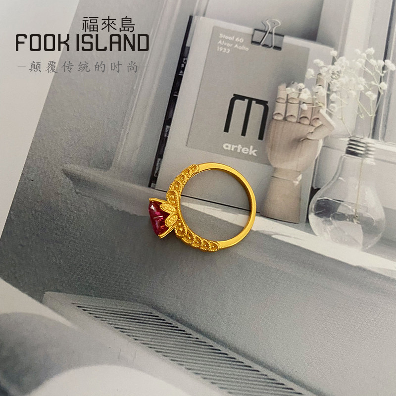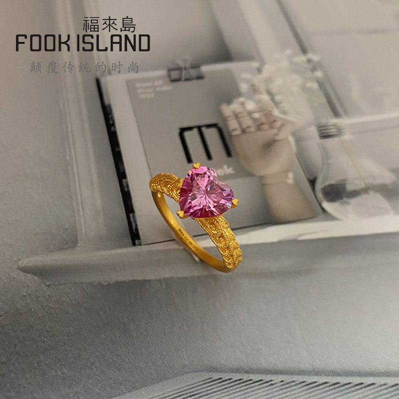 Fulai Island Gold Ring Football 999 Queen's heart powder Mosangstone ring Old Fagin fashion female jewelry