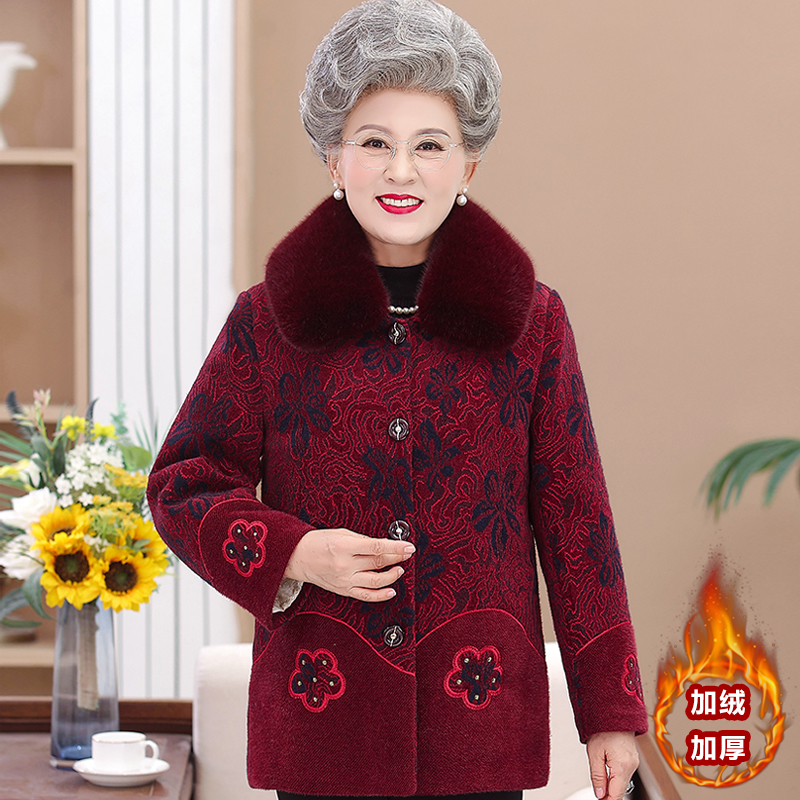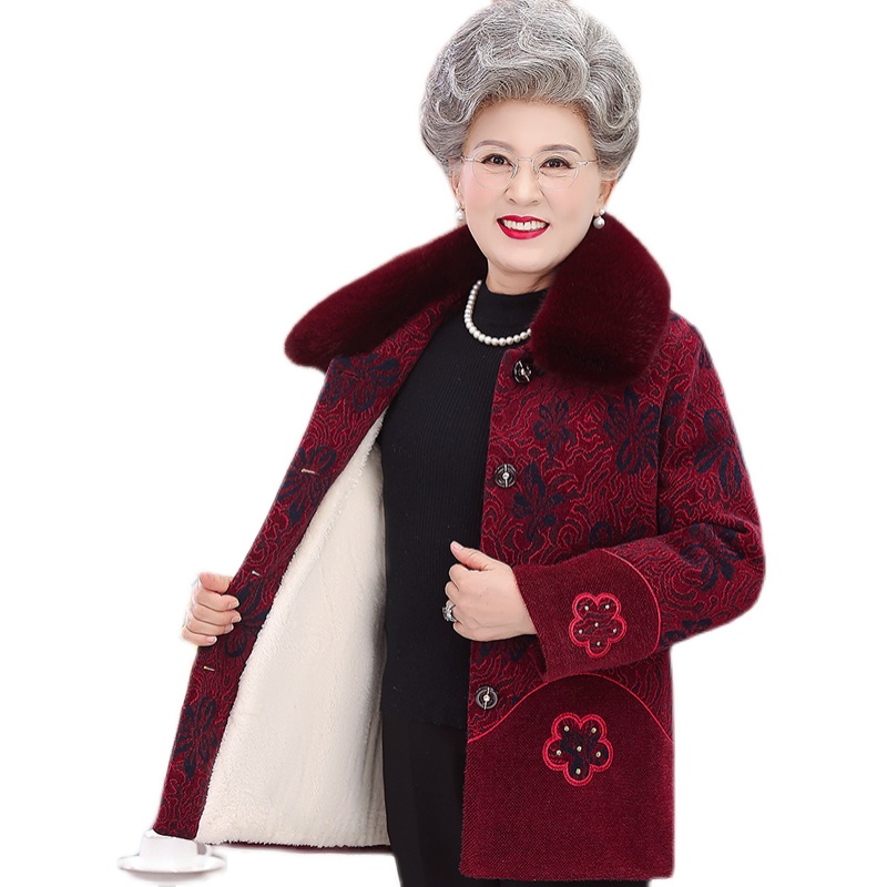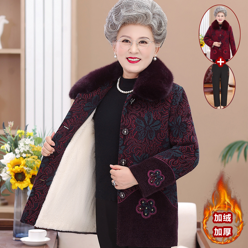 Grandma Winter Dress Water Mink Velvet Big Clothes Seniors Women Moms Plus Suede Thickened Cotton Clot Jacket Mother-in-law Old Lady Cotton Padded Jacket-Taobao