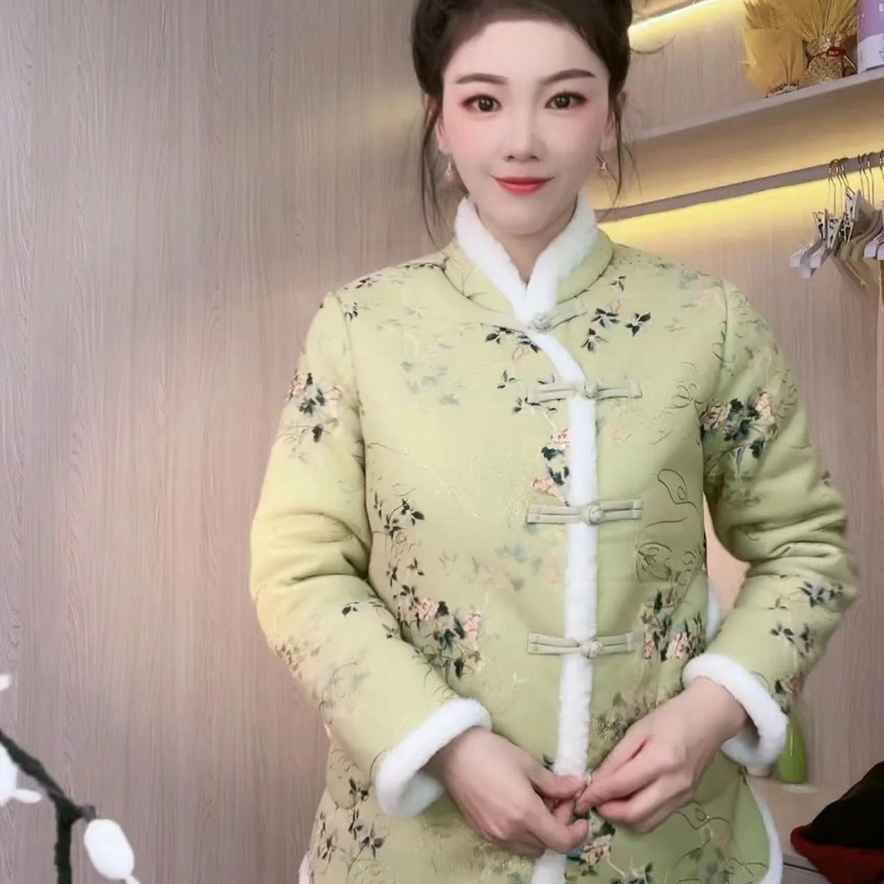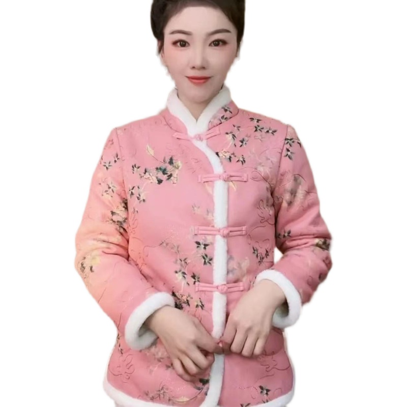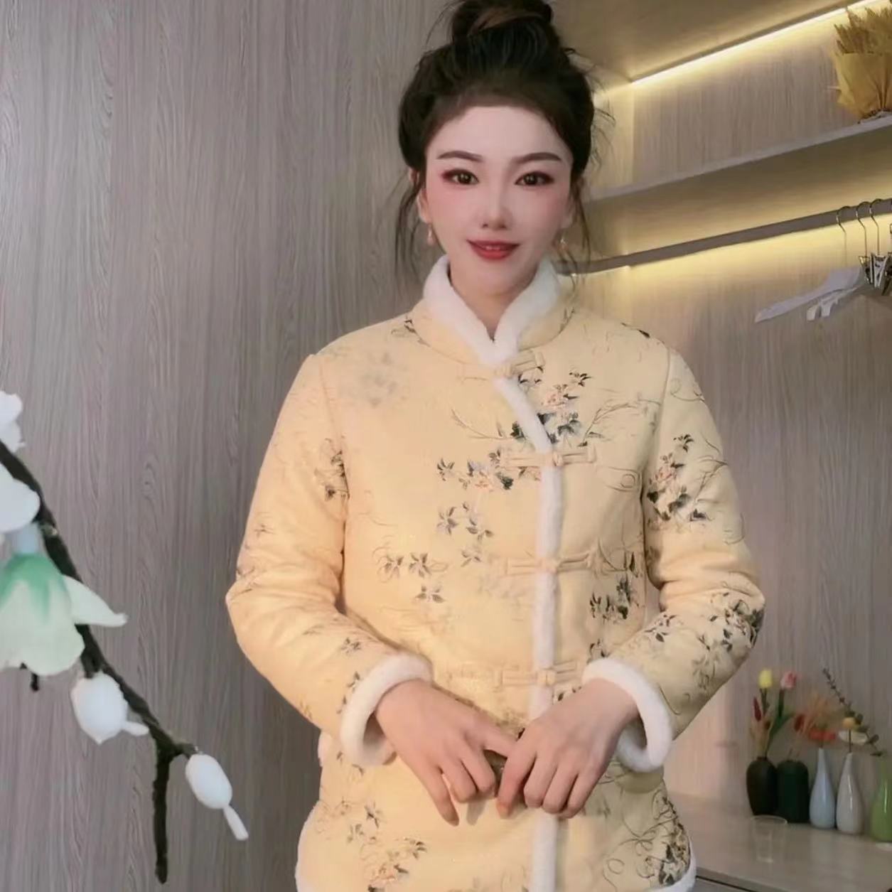 Autumn Winter New Country Tide Plus Suede Thickened Retro Cotton Clothing Display Slim-covered Flesh Tray Button Short national Wind Cotton Padded Jacket-Taobao