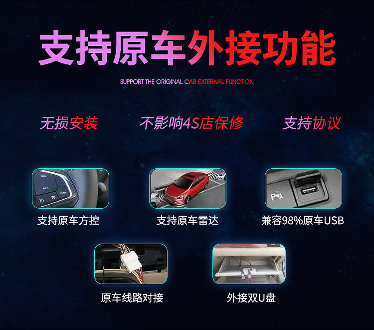 Support WIFI Support video playback Radio Bluetooth connection Support audio playback