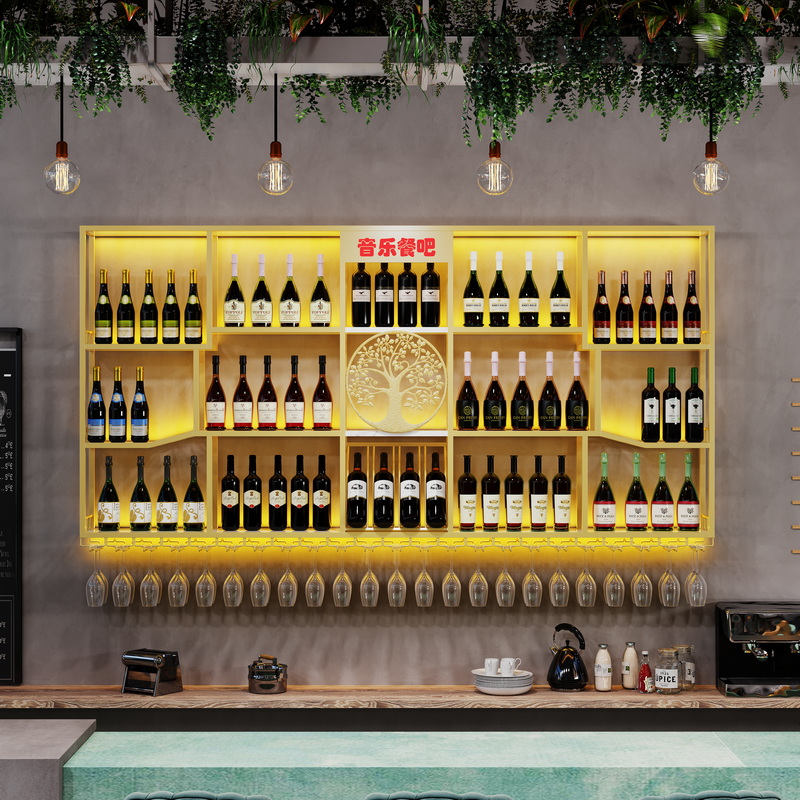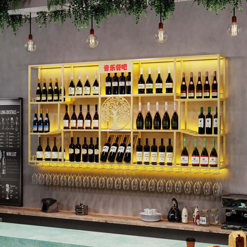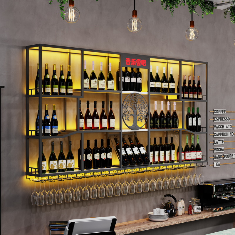 Bar counter wine cabinet against the wall hanging rack industrial wind bar iron art display rack bar counter wine cabinet against the wall hanging