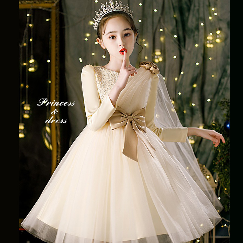 Children's dance plays out for girls Princess Pompongdresses Primary and secondary school Children's kindergarten big choral dress host gown-Taobao