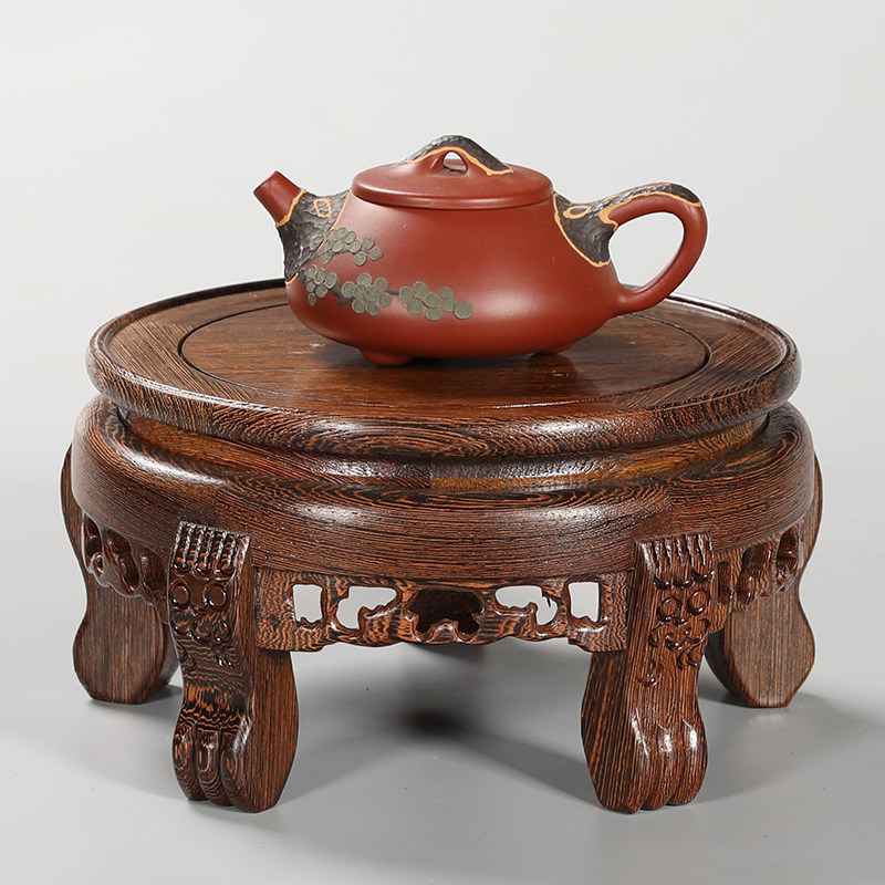 Solid Wood Base Vase Basin Fish Tank Wine Tan Teapot Teapot Buddha Chite Tea Leaves Jar Ceramic Pendulum base Red wood bay-Taobao