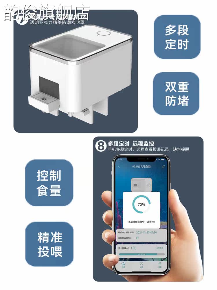 The new smart feeder provides three feeding ports. Smart fish feeder (classic version) with larger bin 450ml smart fish feeder (classic version) with increased bin 1 stacking bin 7