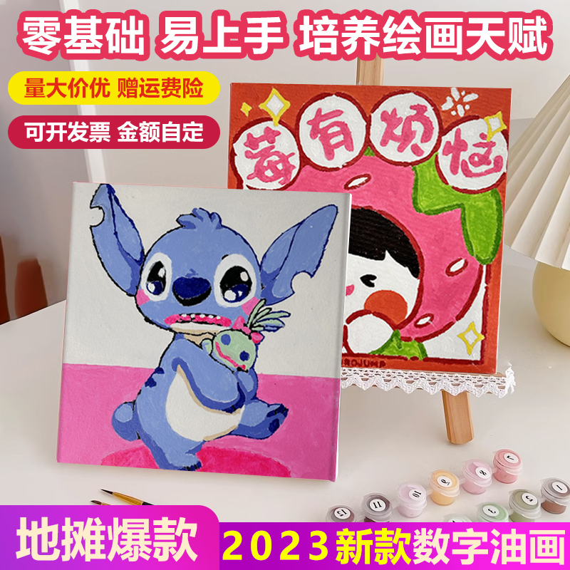 Digital Oil Drawing Cartoon Children Trioli Euromotion Cartoon fill painted oil color painting Artisanal Painting Girl Stall-Taobao