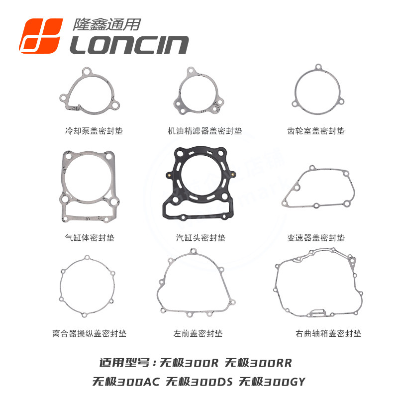 Gear room cover gasket oil filter core cover gasket cooling pump cover Gland Bush Clutch Manipulation Lid Gland Bush Derailleur cover gasket Left coil cover gasket Right clutch cover gasket Gas cylinder Gland Bush Gas