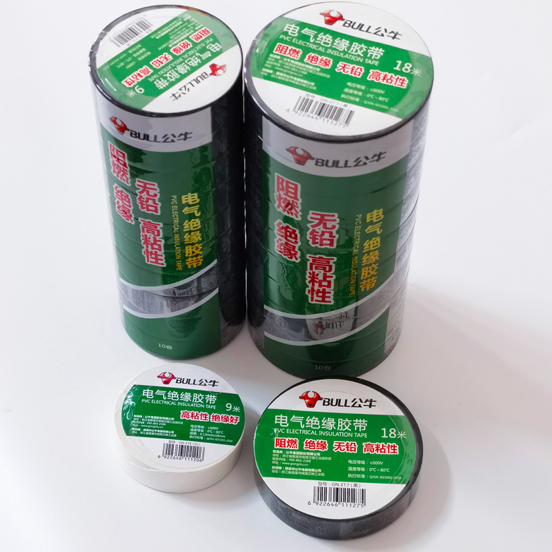 10 packs of bull electrician electrical wire electric tape 9 meters 18 meters black flame retardant high temperature resistant pvc insulating tape