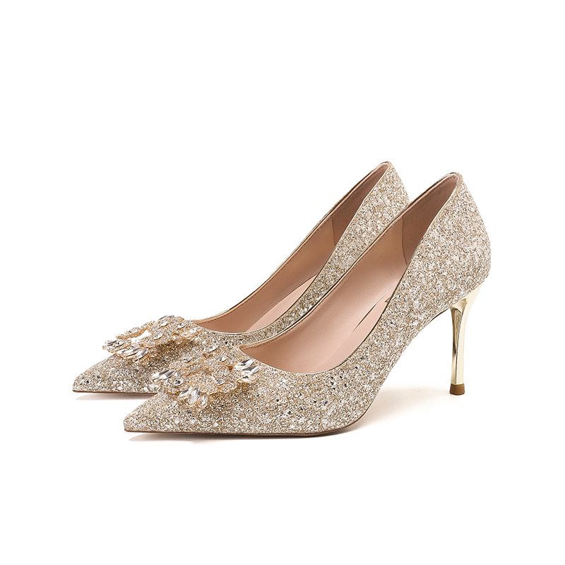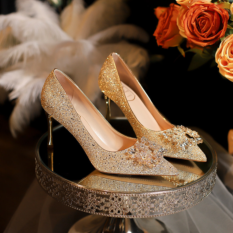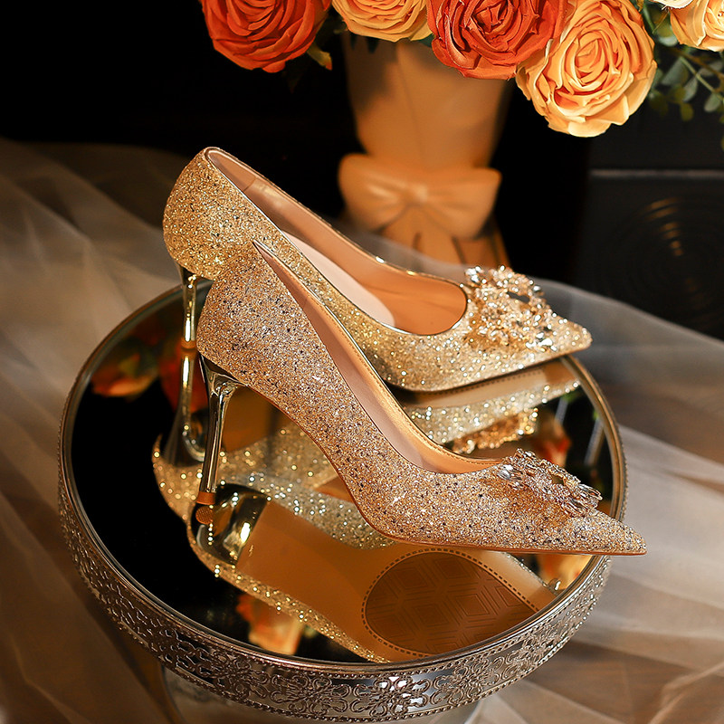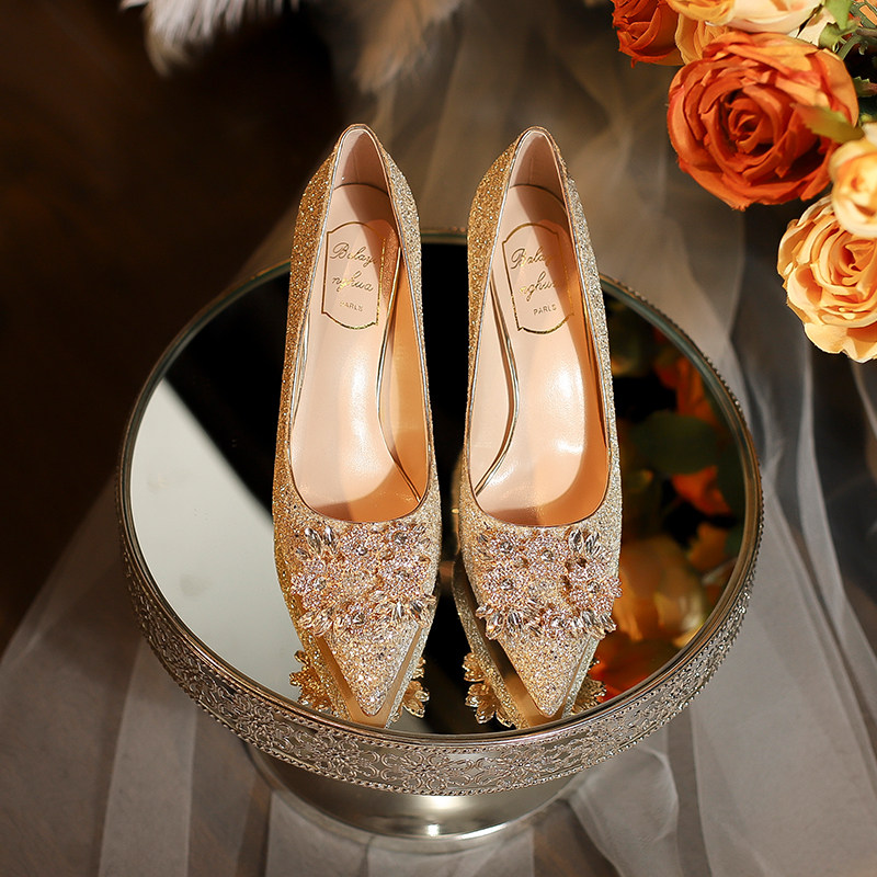 Law-style wedding shoes women 2023 new and show main wedding dress two wear without tired feet crystal champagne autumn winter high heel shoes-Taobao
