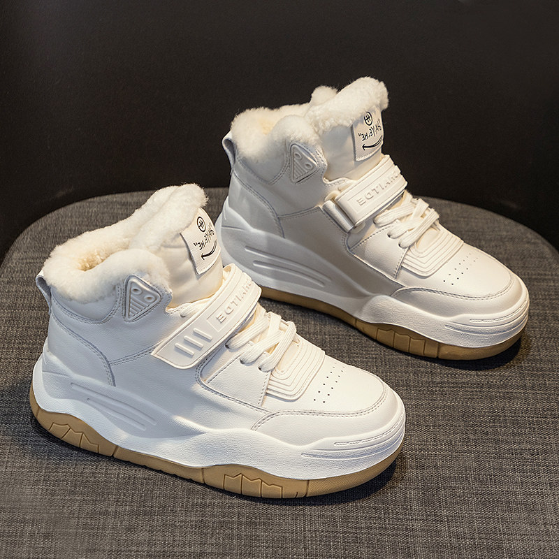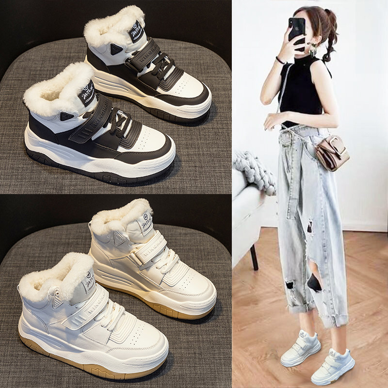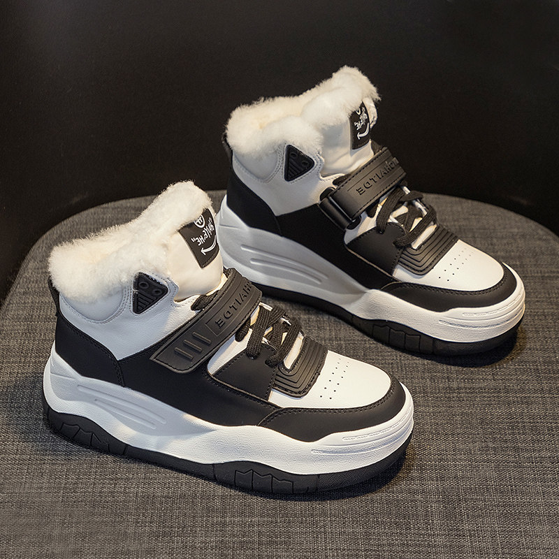 High Helps Great Cotton Shoes Women 2023 Autumn Winter New 100 Hitch Suede Thick Bottom Casual Sports Old Daddy Small White Hairy Shoes-Taobao