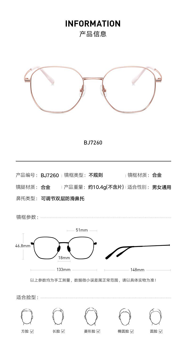 2022 New Tyrannosaurus Myopia Glass Frame Optical Mirror Wang Junkai same ultra light metal frame male and female BJ7260