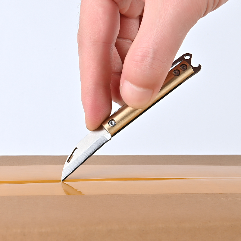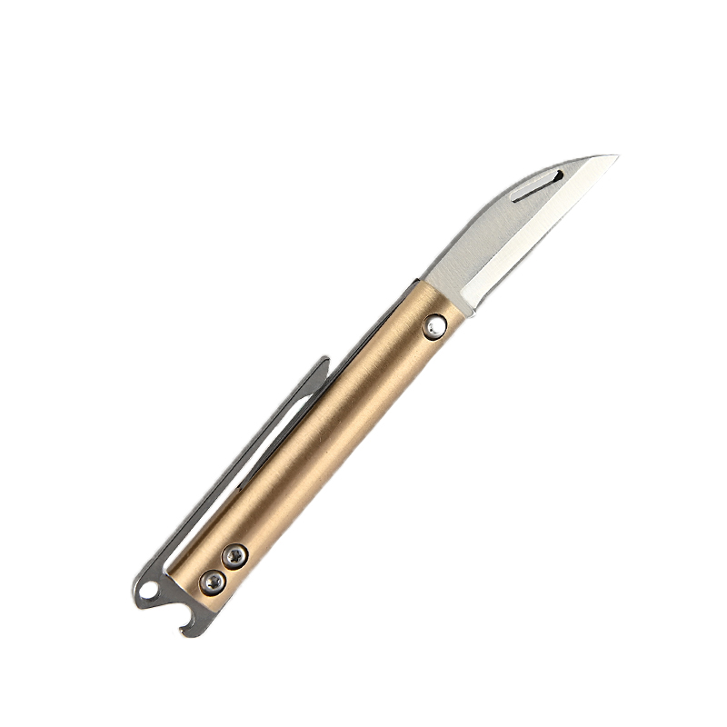 Brass titanium alloy back clip bottle opener small folding knife sharp portable express unboxing knife key chain pendant self-defense